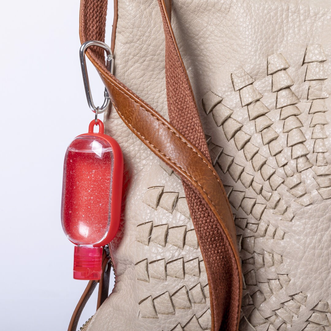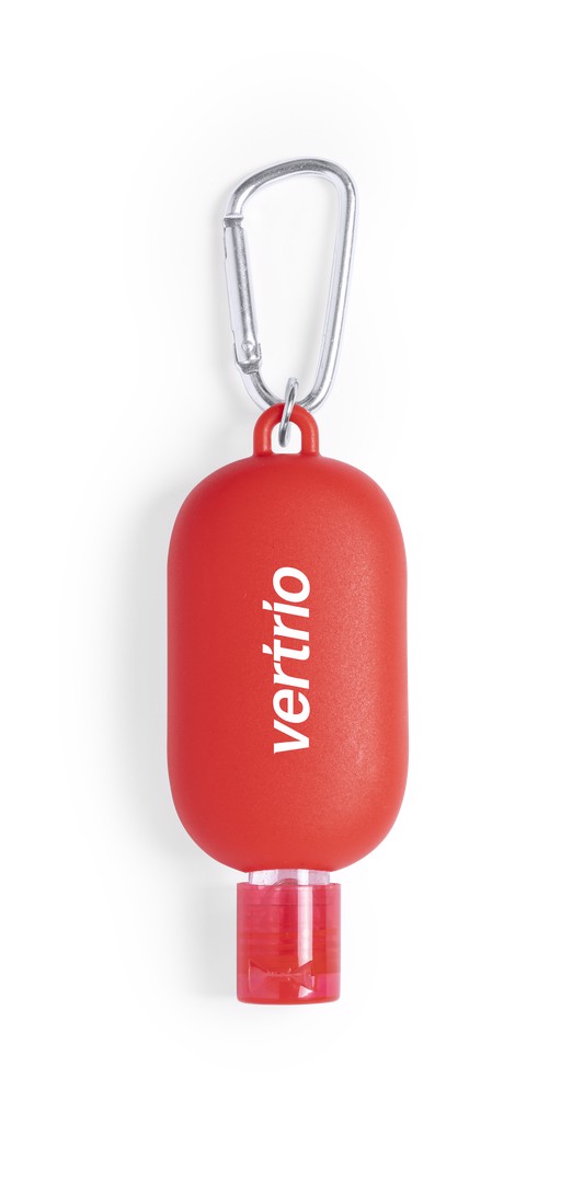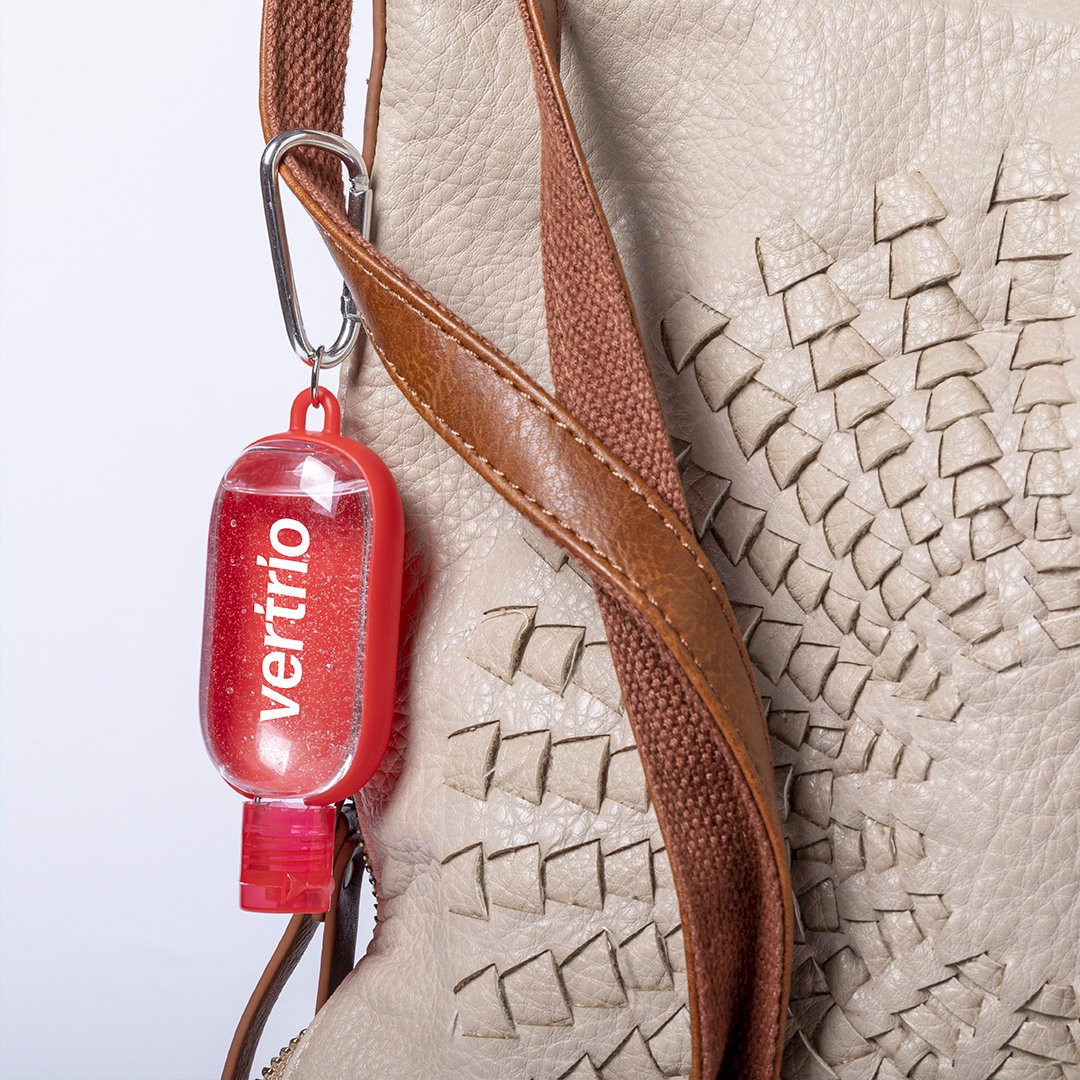 Hydroalcoholic gel for hygiene and skin cleansing in a 30 ml refillable bottle, with balsamic Aloe Vera extract. Body in a wide range of colours, with dispenser, safety cap and carabiner for transport / fixing. Solution with 65% alcohol content. Article with GMP (Good Manufacturing Practices) certification that guarantees compliance with rigorous control measures to obtain a safe, quality product. 94/62/EC certification available. Article with GMP (Good Manufacturing Practices) certification that guarantees the fulfilment of rigorous control measures to obtain a safe and quality product. 30 ml. Skin cleansing solution
