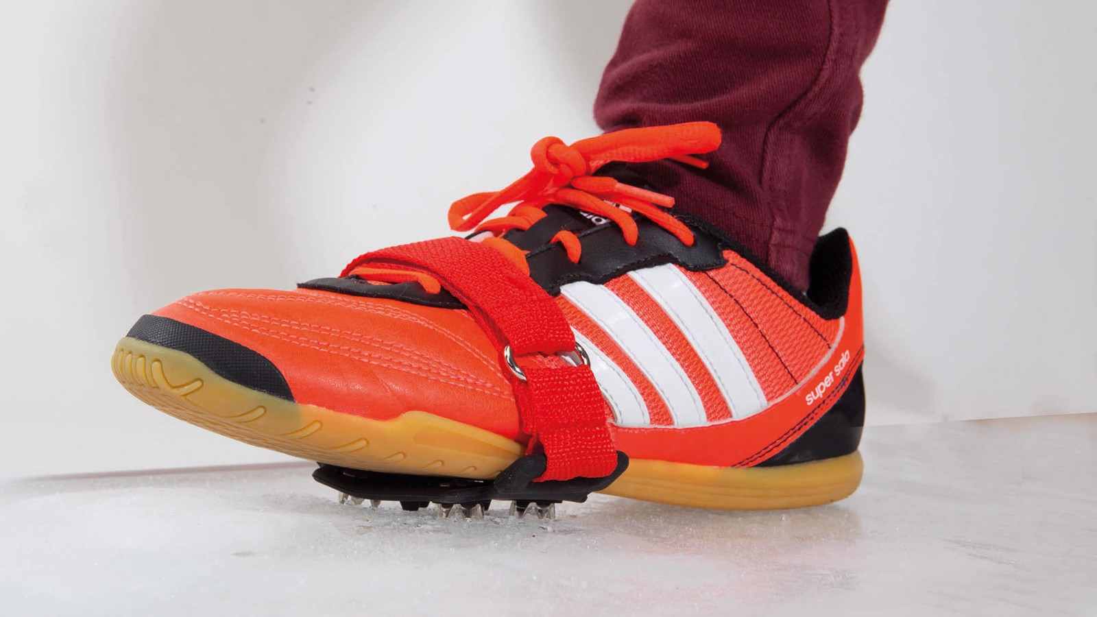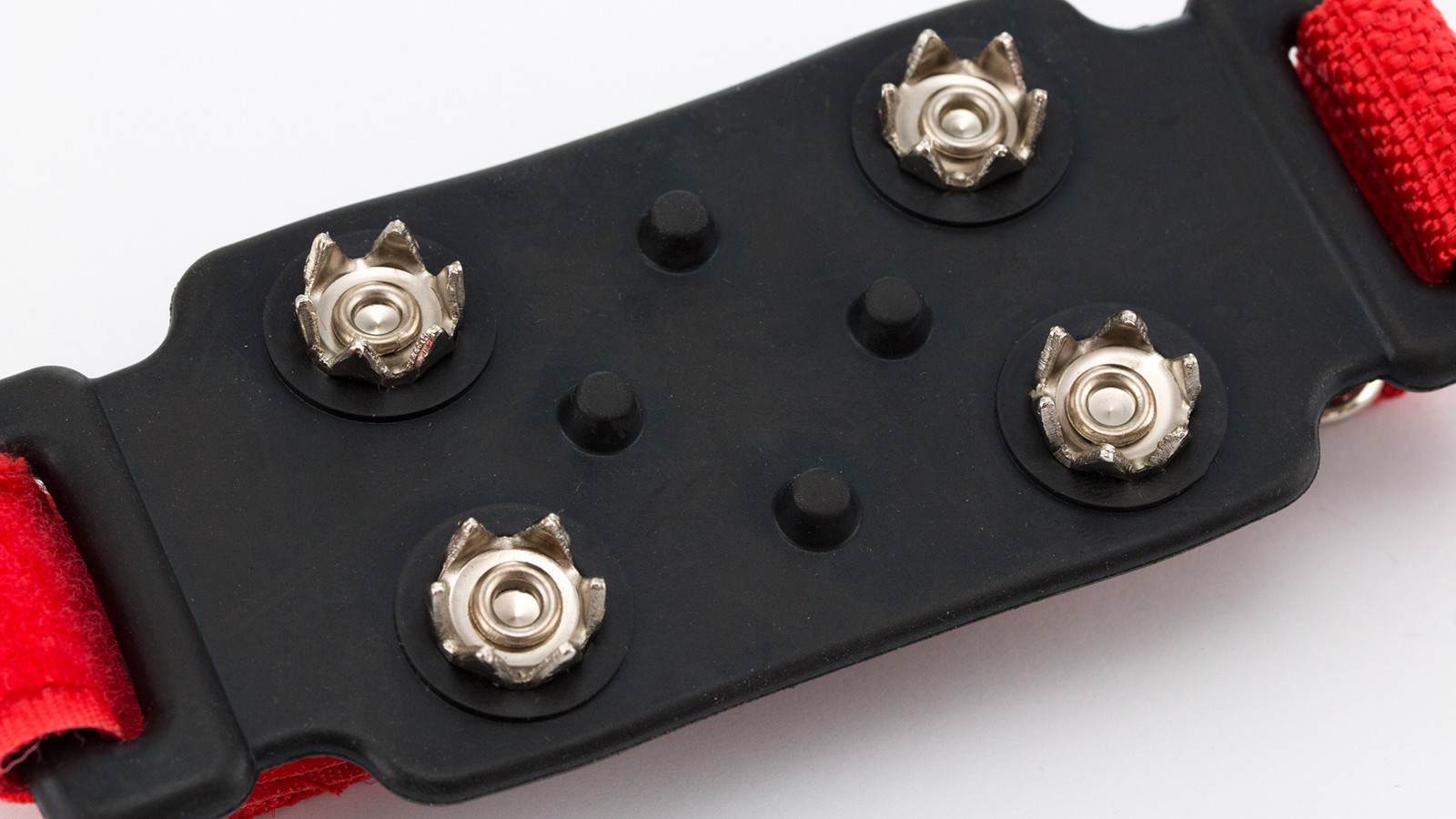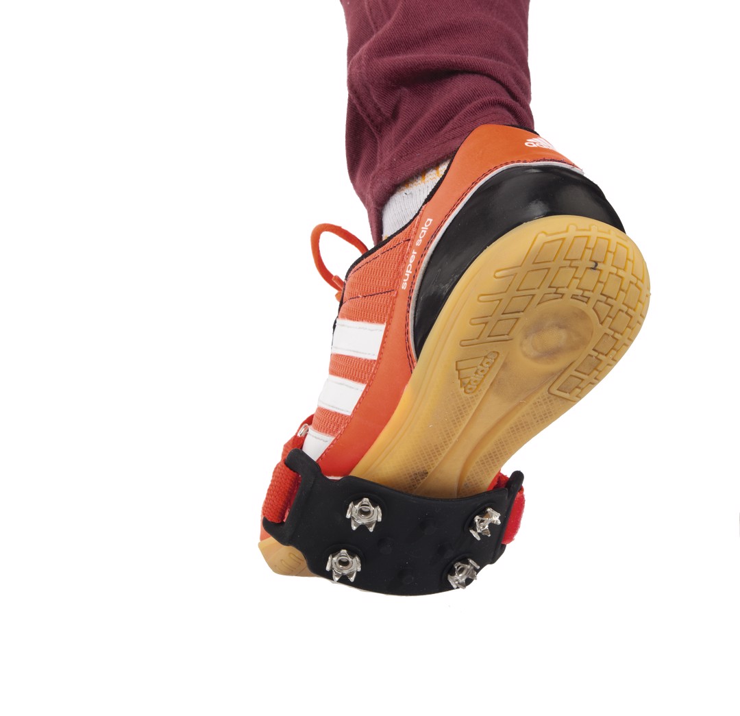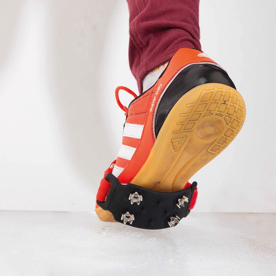 Pair of non-slip crampons for ice and snow in resistant polyester in assorted colors. With quadruple non-slip system and adjustable by velcro closure. Adjustable