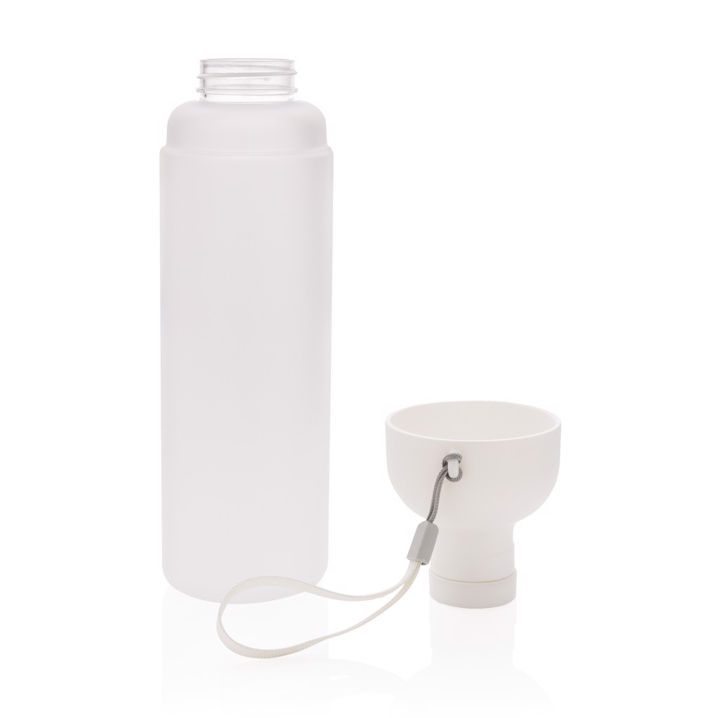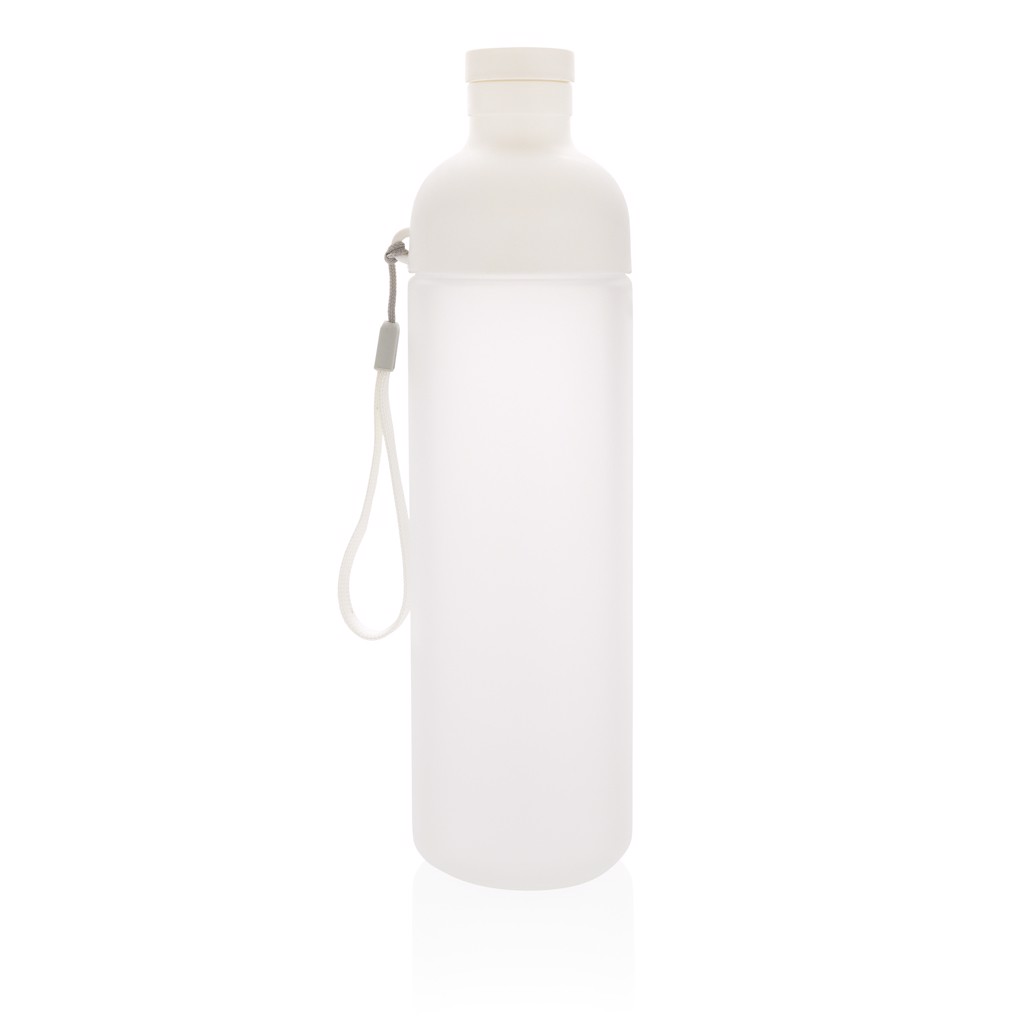 Eliminate the use of plastic bottles with this Impact leak proof tritan water bottle. With its fresh design and frosted body, the bottle is not only easy to use but also beautiful to look at. The split body design makes it easy to clean and is great if you want to add ice cubes into your bottle. In the body is a strap attached for easy carrying. Capacity 600ML. BPA free. 2% of proceeds of each sold product of the Impact Collection will be donated to Water.org.