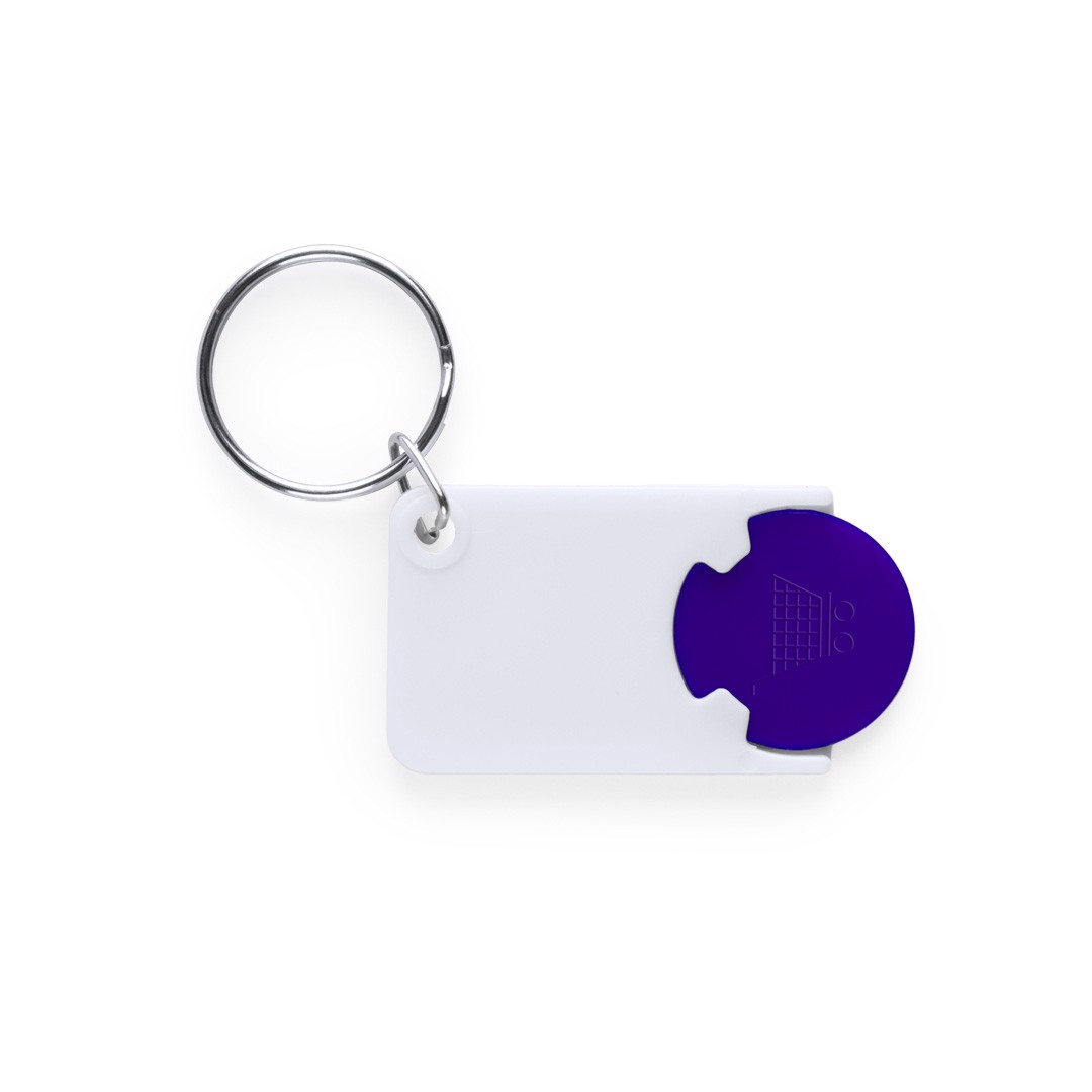 Keychain coin in fun design bicolored in varied colors and with removable coin.