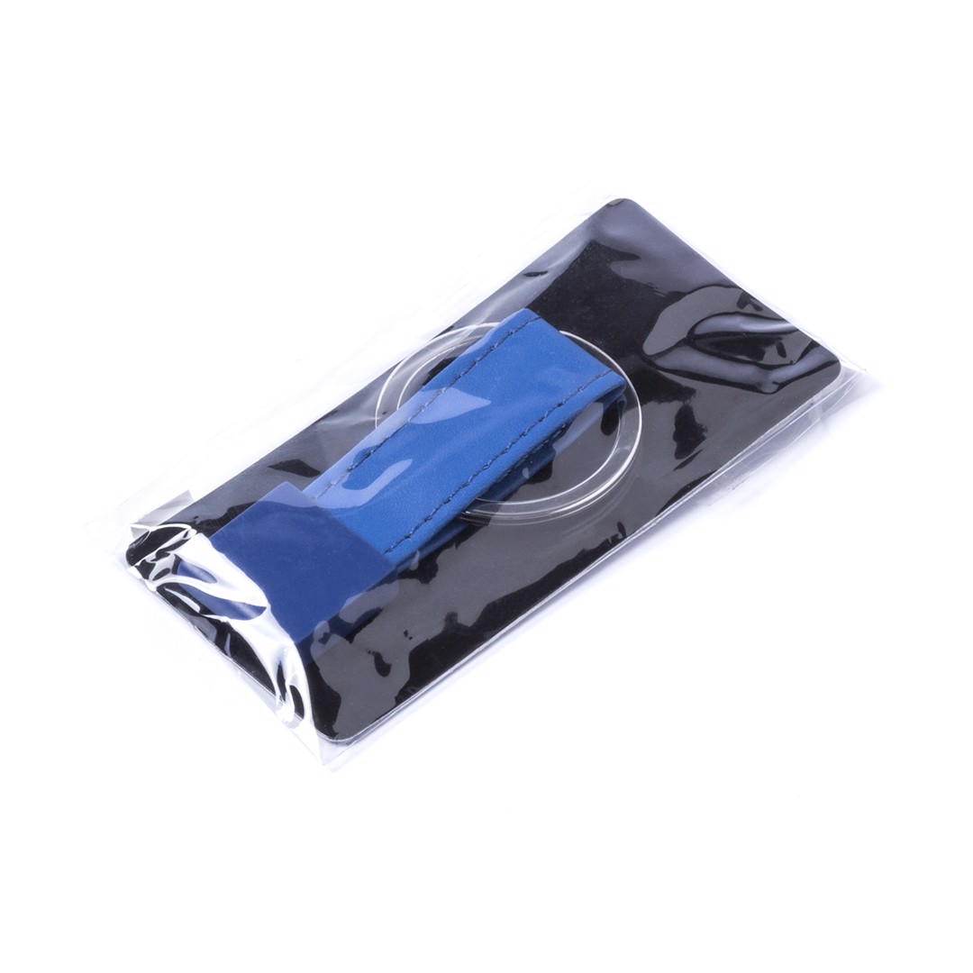 Keychain with body in PU leather of bright and in varied colors. Matching color metallic finish especially designed for laser printing.