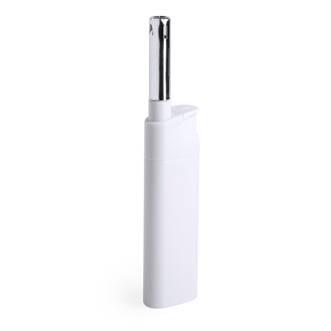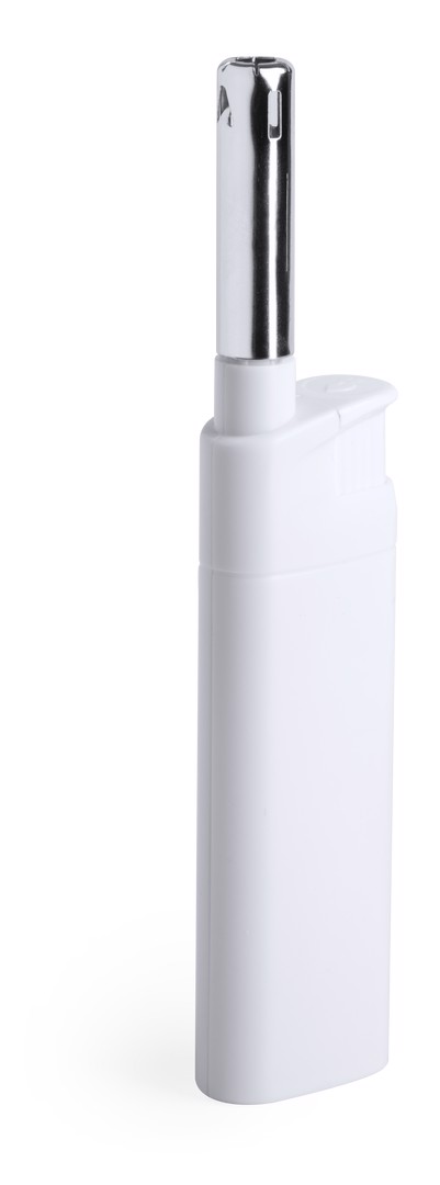 Kitchen, rechargeable gas lighter with electric mechanism. Available in black and white color, with flame regulator and child protection. Refillable