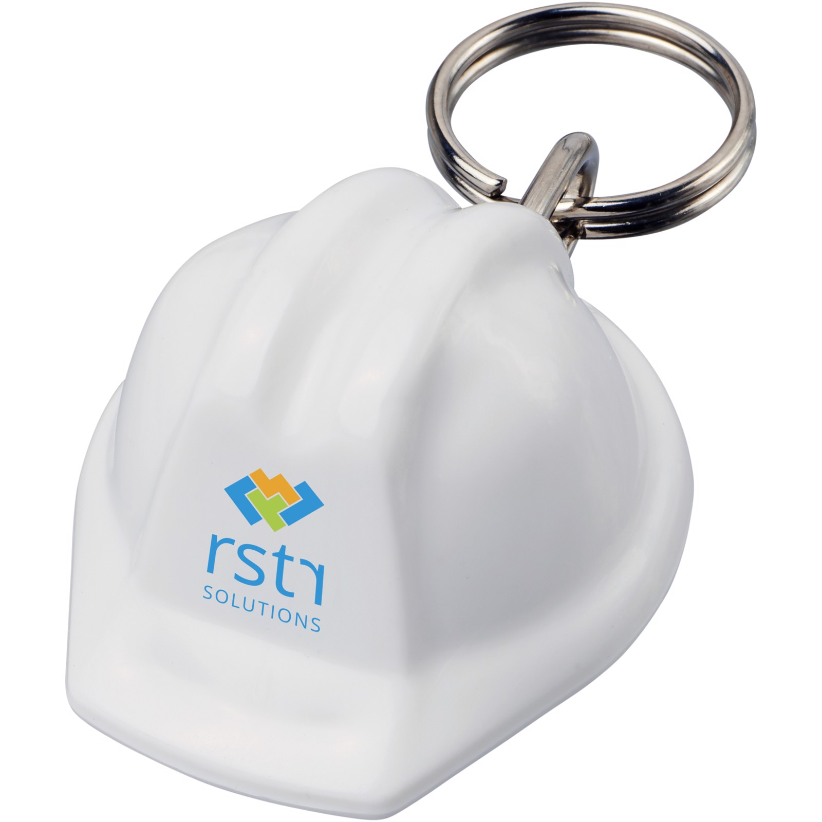 Hard hat shaped keychain with metal split keyring. Ideal for construction or safety organisations.