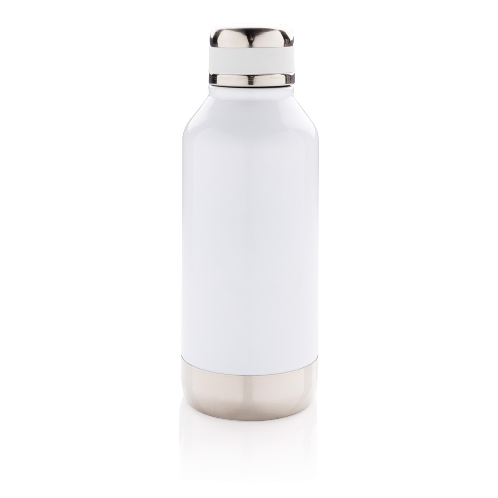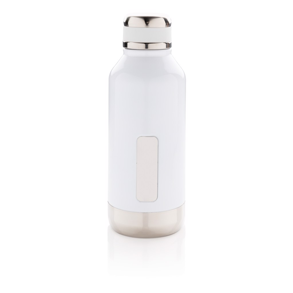 Leakproof vacuum insulated bottle with twist off lid. With unique logo position on the front. 304 stainless steel inner and 201 stainless steel outer keeps your drinks hot 5h and cold 15h. Content: 500ml.