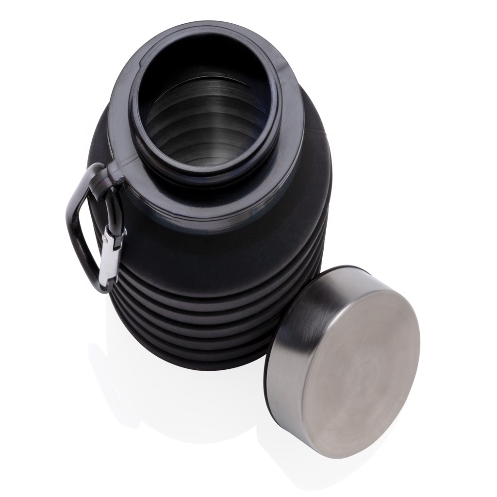 Save 50% space thanks to this smartly designed collapsible silicone bottle. With its capacity of 550ml you can keep yourself hydrated while out and about doing your outdoor activities. Made out of 100% food grade silicone material, it is flexible and easy to clean. A handy carabiner enables you to hook the bottle onto your bag for easy carrying. BPA free.