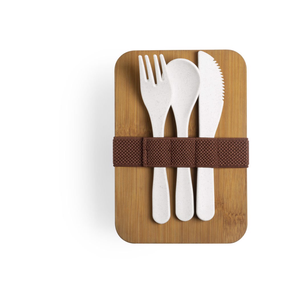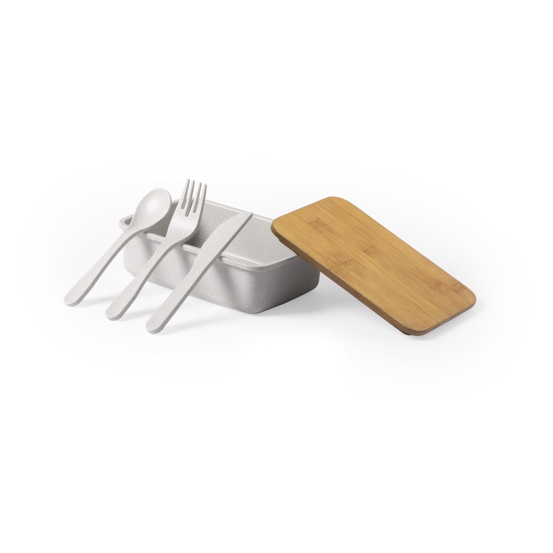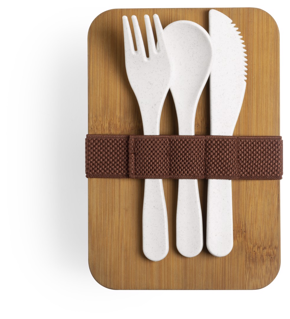 700 ml capacity lunch box in nature line. In bamboo fibre, with lid in polished bamboo. Security strap with fork, spoon and knife. BPA free and suitable for freezer. 700 ml