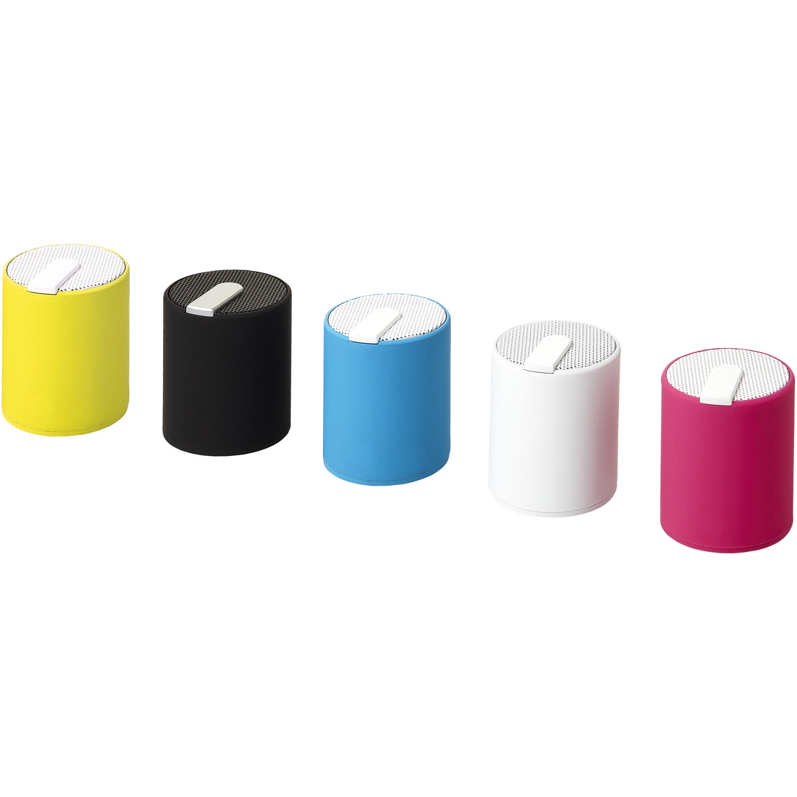 Mini Bluetooth® speaker with 10 meter range wireless connection. The soft touch body gives the speaker a nice quality feeling. Includes a USB power supply and 3.5mm line-in cable. Packed in an Avenue gift box.