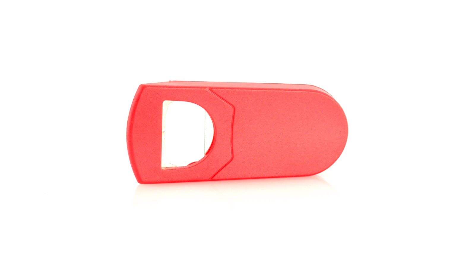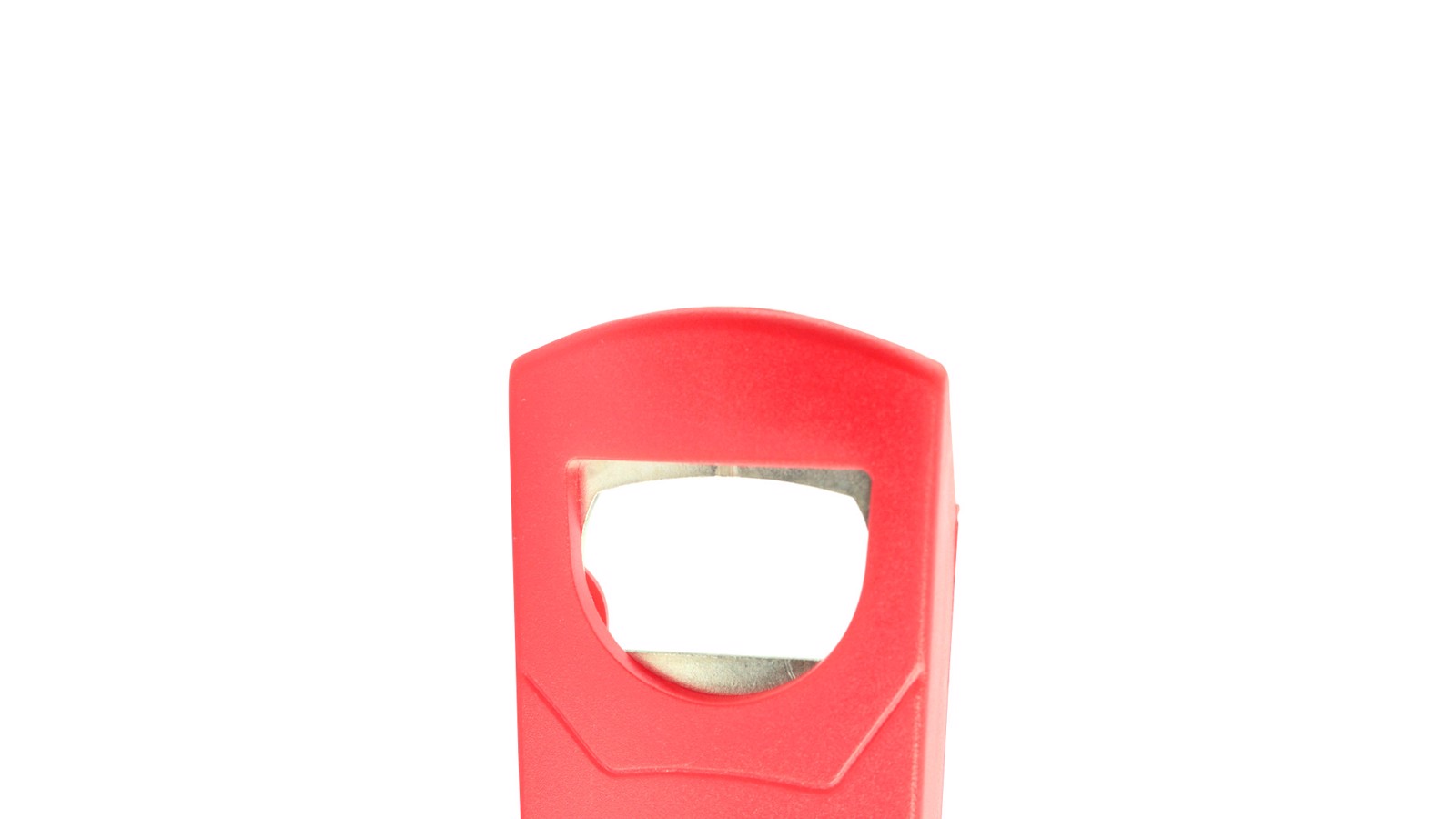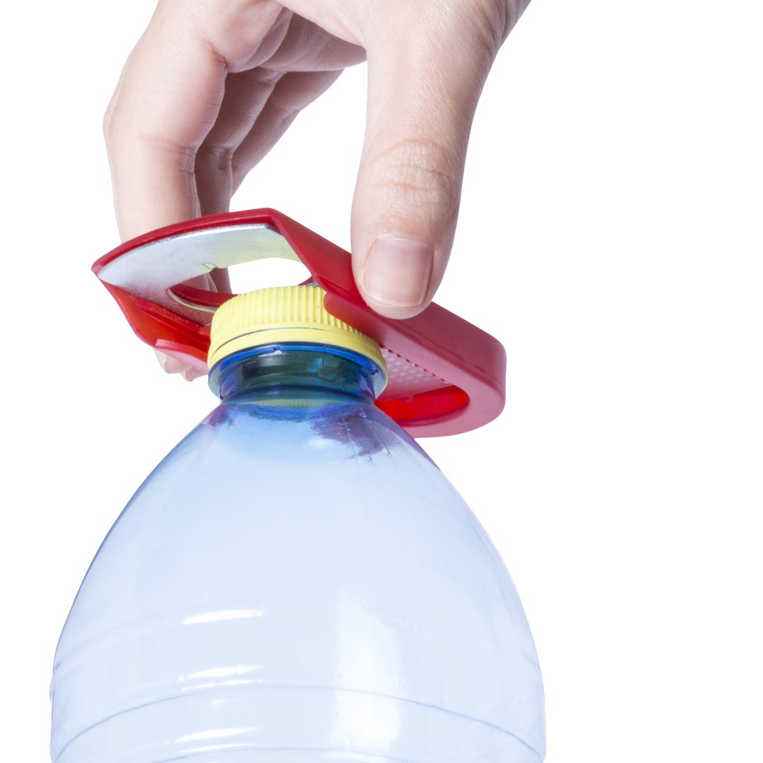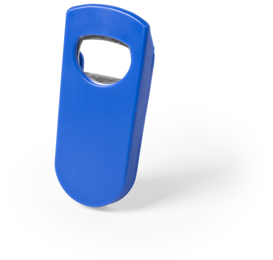 Opener with resistant body in assorted colors and with a metal piece for opening. Backside with bottle cover.