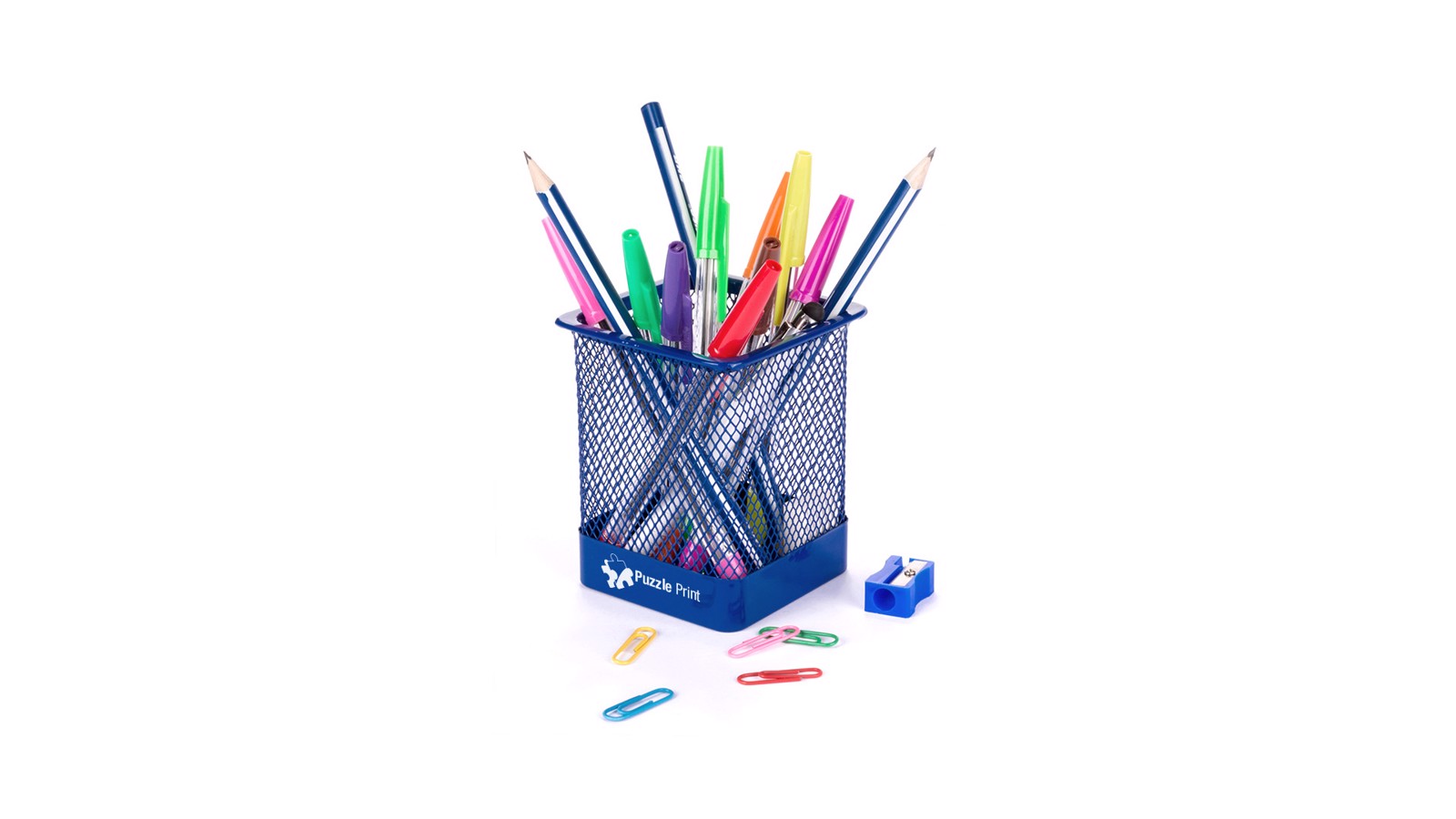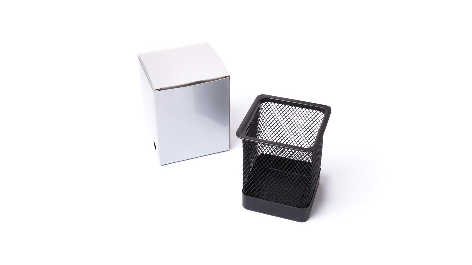 Metal mesh pencil holder in bright finish and bright tones. Presented in an individual box.