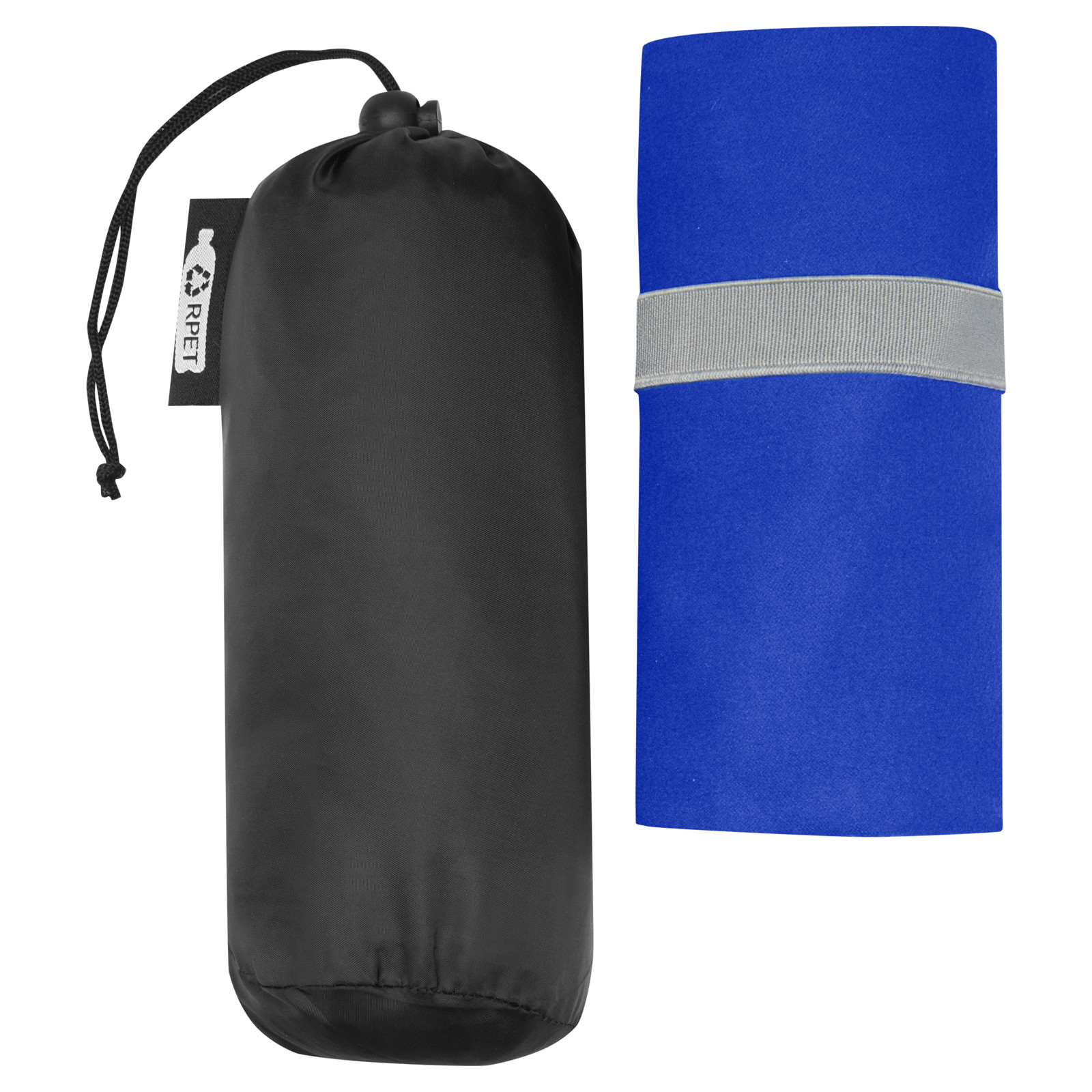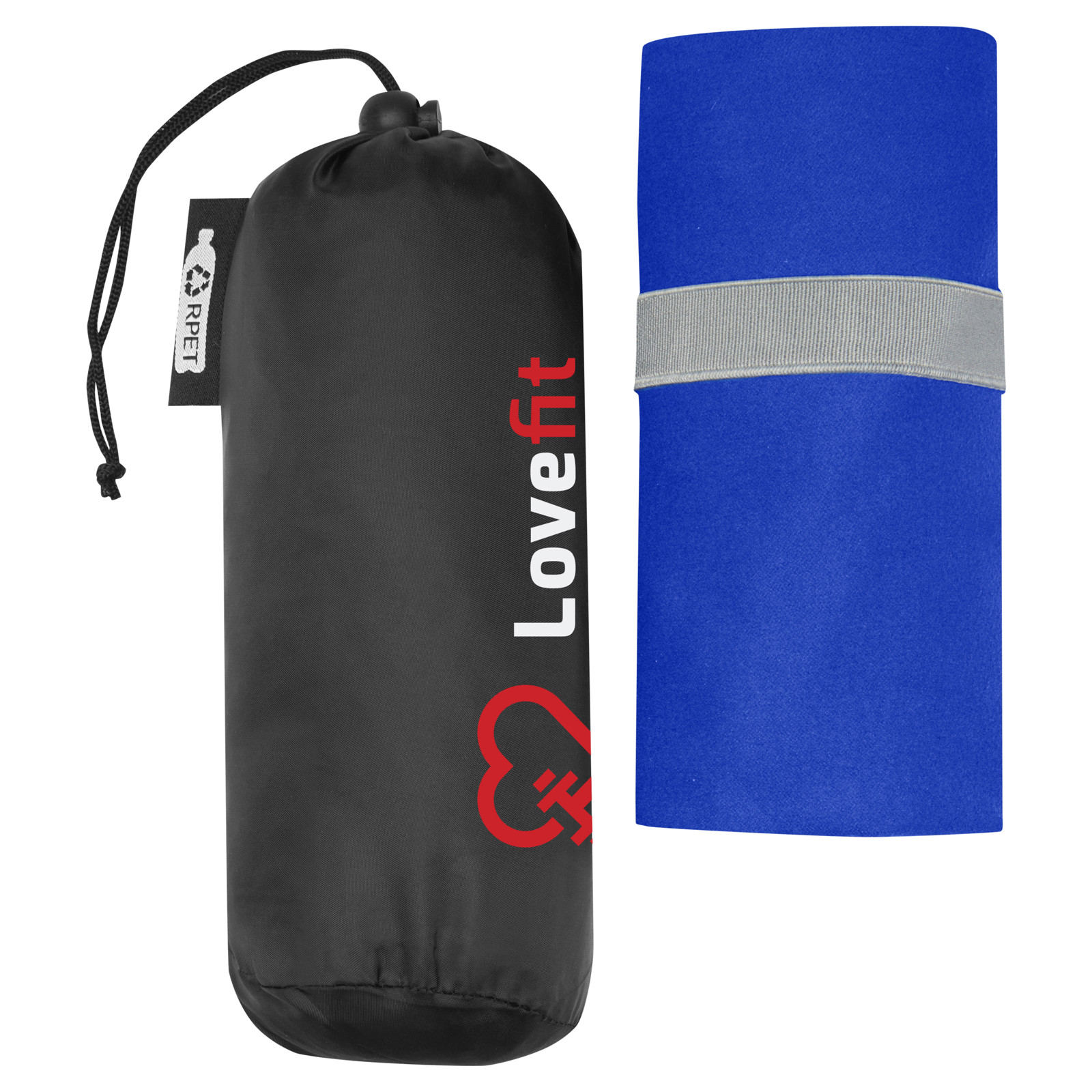 This sport towel absorbs very well, is lightweight and dries quickly. In addition, the fabric is durable and extremely soft. When the towel is folded and secured with the elastic band it's reduced to a small size, making it suitable for bringing to the gym, swimming pool, or for when going backpacking or camping. The towel has a size of 130 x 80 cm and is made from 200 gr/m2 recycled PET polyamide, and can be washed in the washing machine at 40 °C. Delivered with a storage pouch (20 x 8.5 cm) made from recycled PET plastic, which provides a great area for printing a logo.