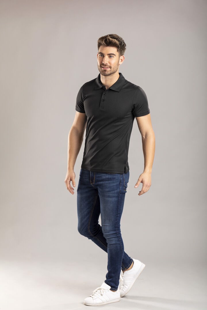 Technical polo shirt in 100% breathable polyester material of 180g/m2. With 3 matching color buttons and available in a wide range of bright tones. Sizes S, M, L, XL, XXL. Breathable. Sizes: S, M, L, XL, XXL