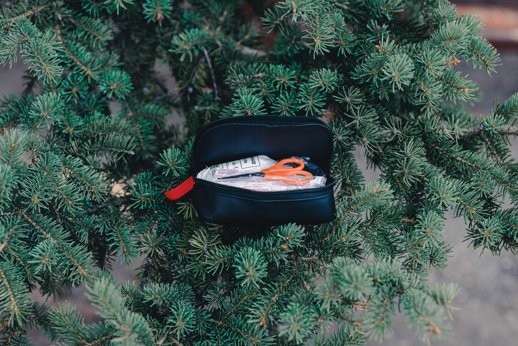 Luxury first aid kit, featuring a water-repellent nubuck-PU material that is both stylish and practical. The material is easy to clean and repels water, making it perfect for use while on the go. Contents: 1pc triangle bandage, 1pc PBT bandage, 4pcs alcohol pad, 1pc swab, 5pcs plasters, 1pc scissor, 2pc pin, 1 pc tape; All content according to Medical Device Directives: 93/42/EEC and EU (2017/745), EN ISO 13485:2016; All content (except for pins and scissor) packed in paper bag marked with all mandatory markings needed for EU legislation, like “Expiration date, CE, LOT number. Total recycled content: 32% based on total item weight. RCS certification ensures a completely certified supply chain of the recycled materials
