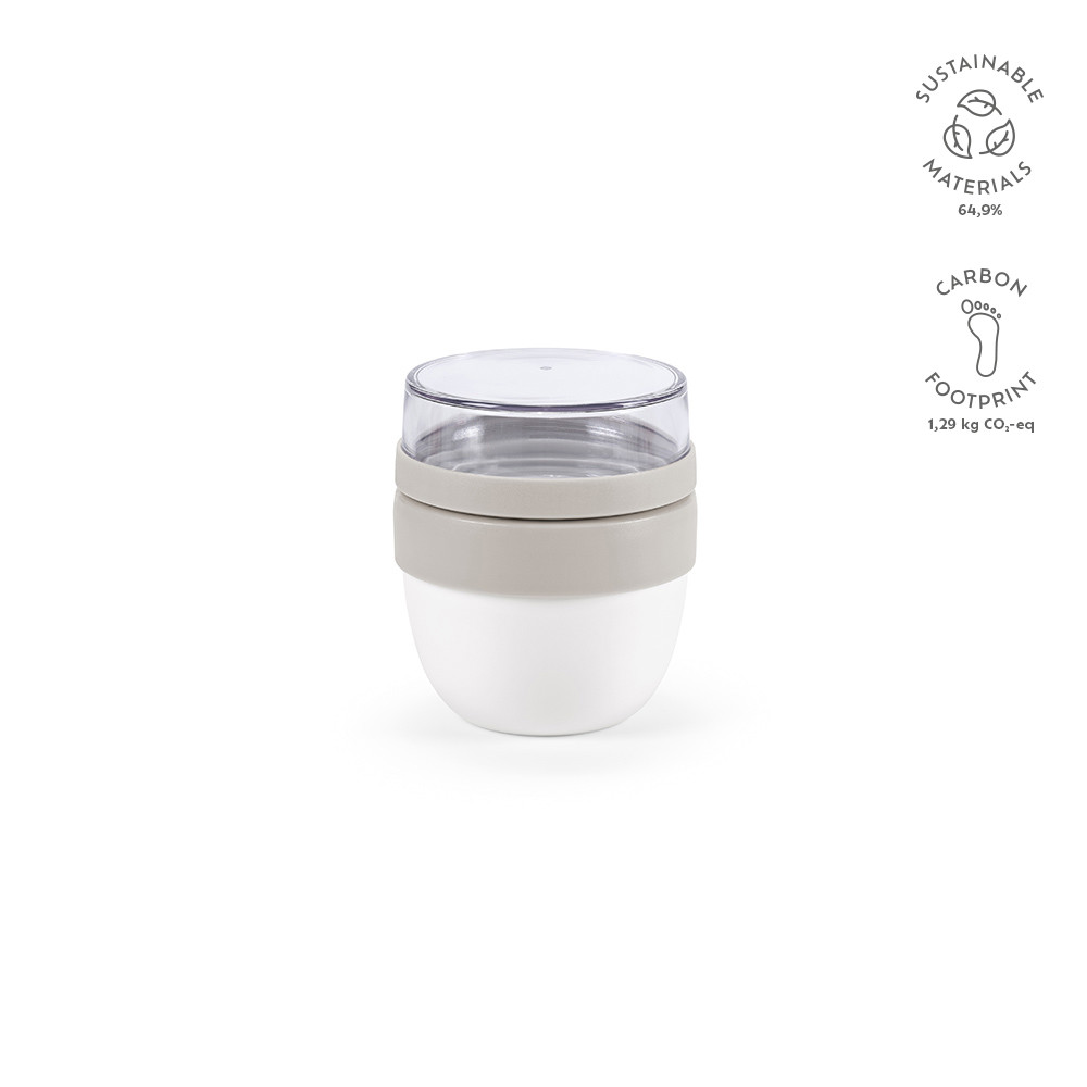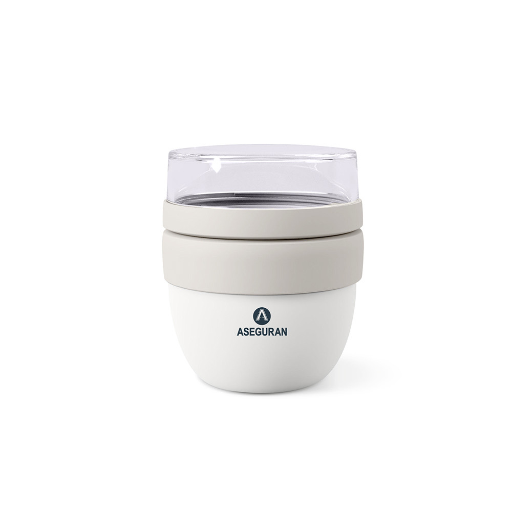 The Rembrandt 800 food flask displays 2 compartments: the bottom 350ml (260ml net) in recycled stainless steel and the 230ml (110ml net) plastic lid. Double-walled and oval-shaped perfect for soup and croutons. The leak-proof lid means you can take it anywhere. Packed inside an individual kraft box.