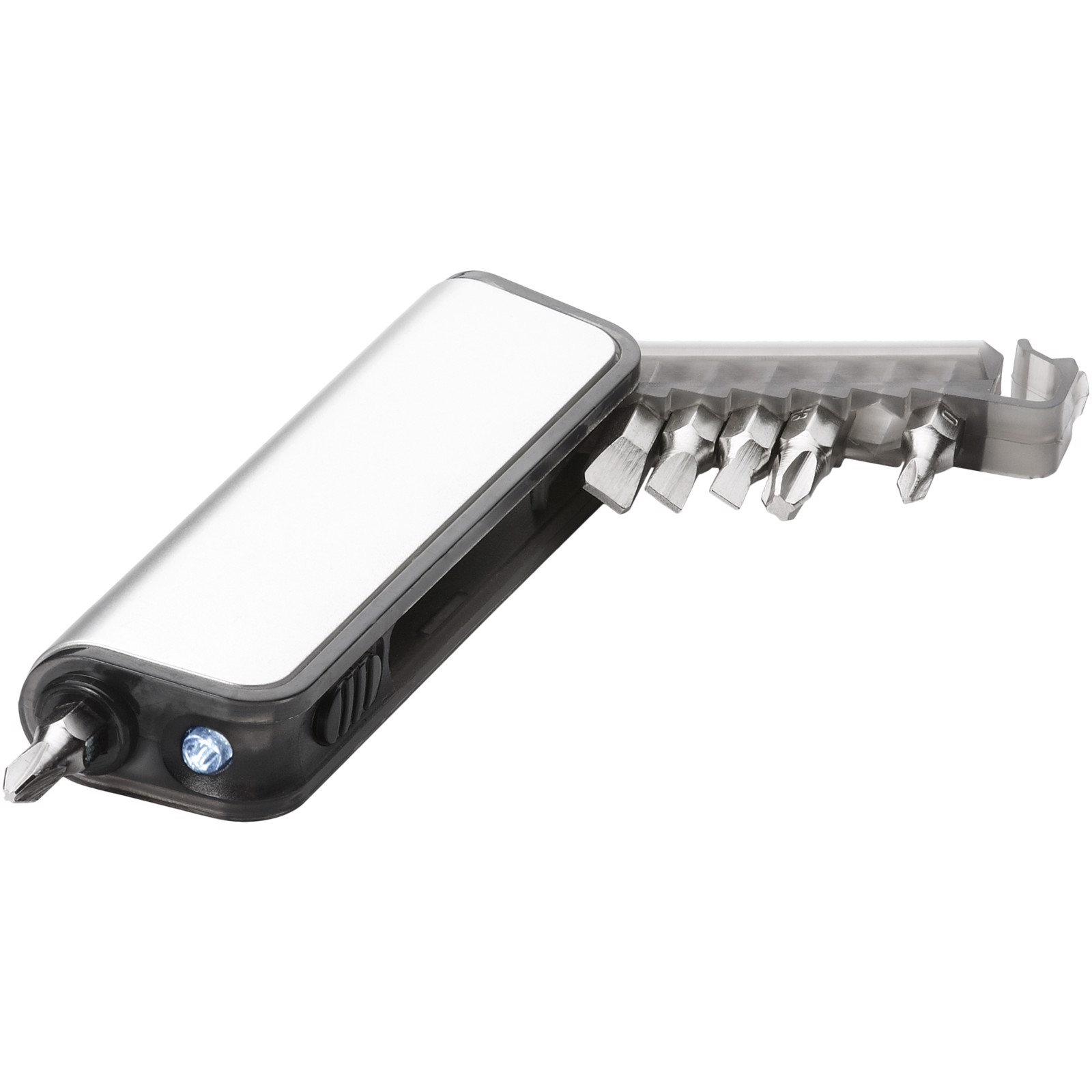 Reno 7-function mini tool box with LED flashlight