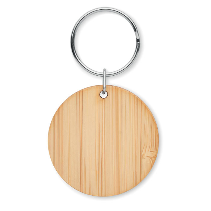 Round bamboo key ring. Bamboo is a natural product, there may be slight variations in colour and size per item, which can affect the final decoration outcome.
