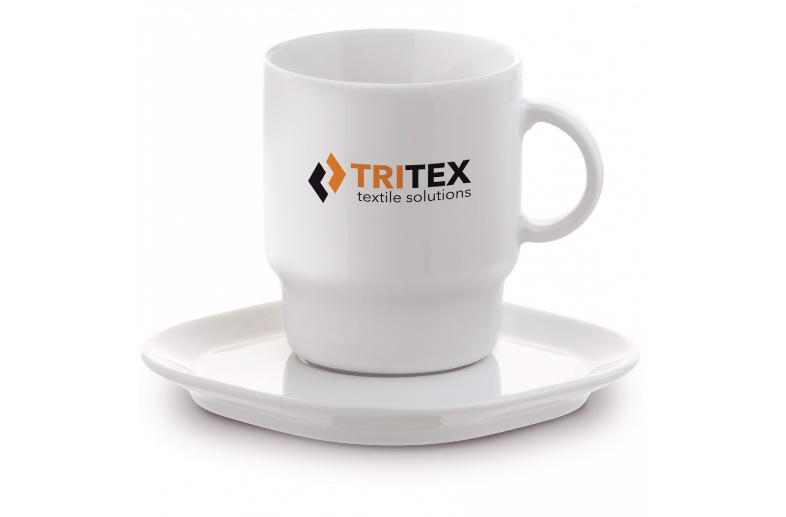 High quality porcelain cup and saucer from our Toppoint design 'Satellite' series. The cup is stackable. The cup offers a large print area.