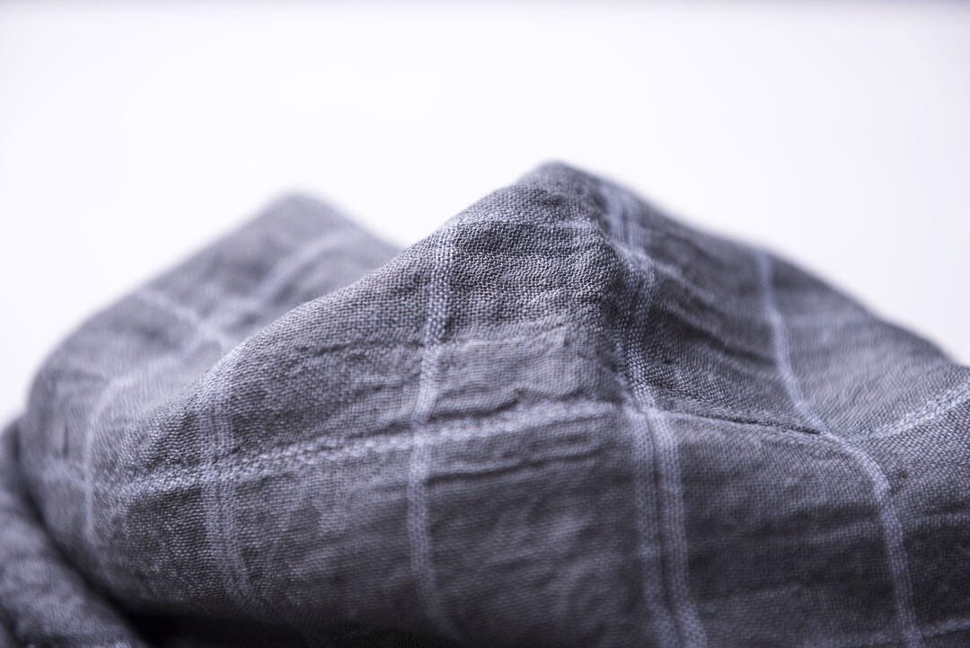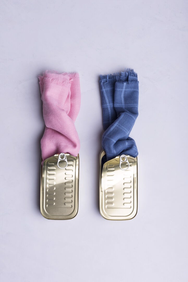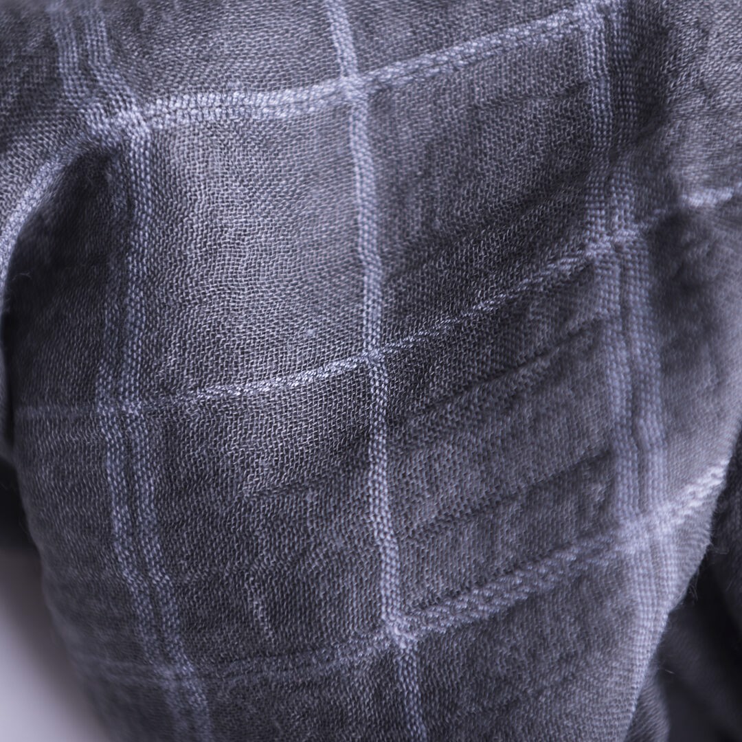 Long scarf of elegant bicolor checkered design. With soft body in cotton/polyester combination and fringes at the ends.