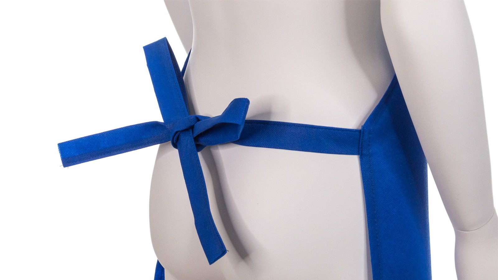 Children´s set of apron and kitchen hat in brightly colored non-woven. Apron with front pocket and adjustment straps. One Size. Kids
