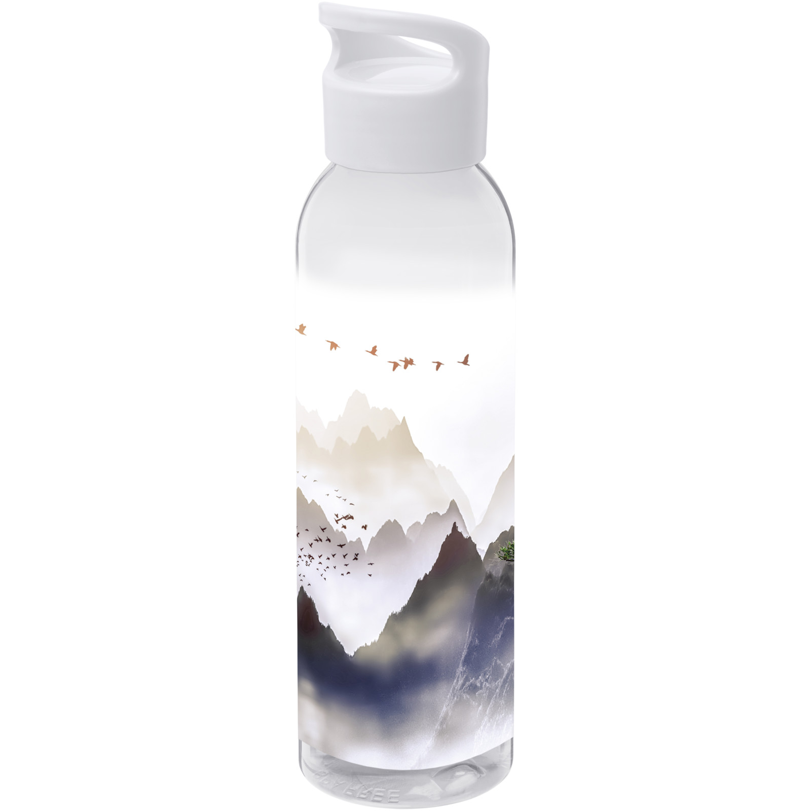 The clear Sky water bottle is made of Eastman Tritan™ making this bottle BPA-free, light, durable and impact-resistant. The bottle is single-walled and holds 650 ml of liquid, and it fits in the side pocket of most backpacks, as well as in most car cup holders. The twist-on lid ensures easy opening and closing, and has a built-in carrying handle.