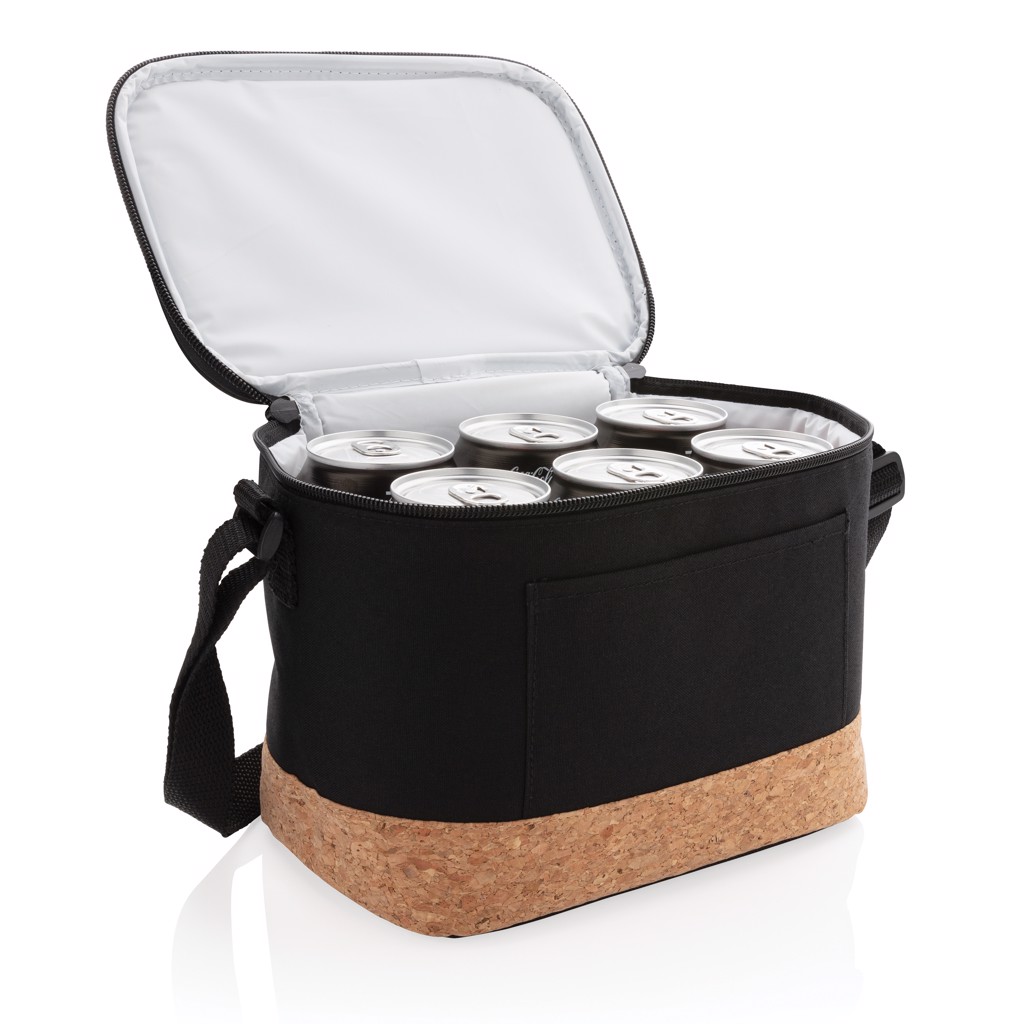 Keep your food and drinks cool until you are ready to use them in this beautiful two tone cooler bag with cork detail. This cooler bag can fit up to 6 cans. Including shoulder strap for versatile carrying options.