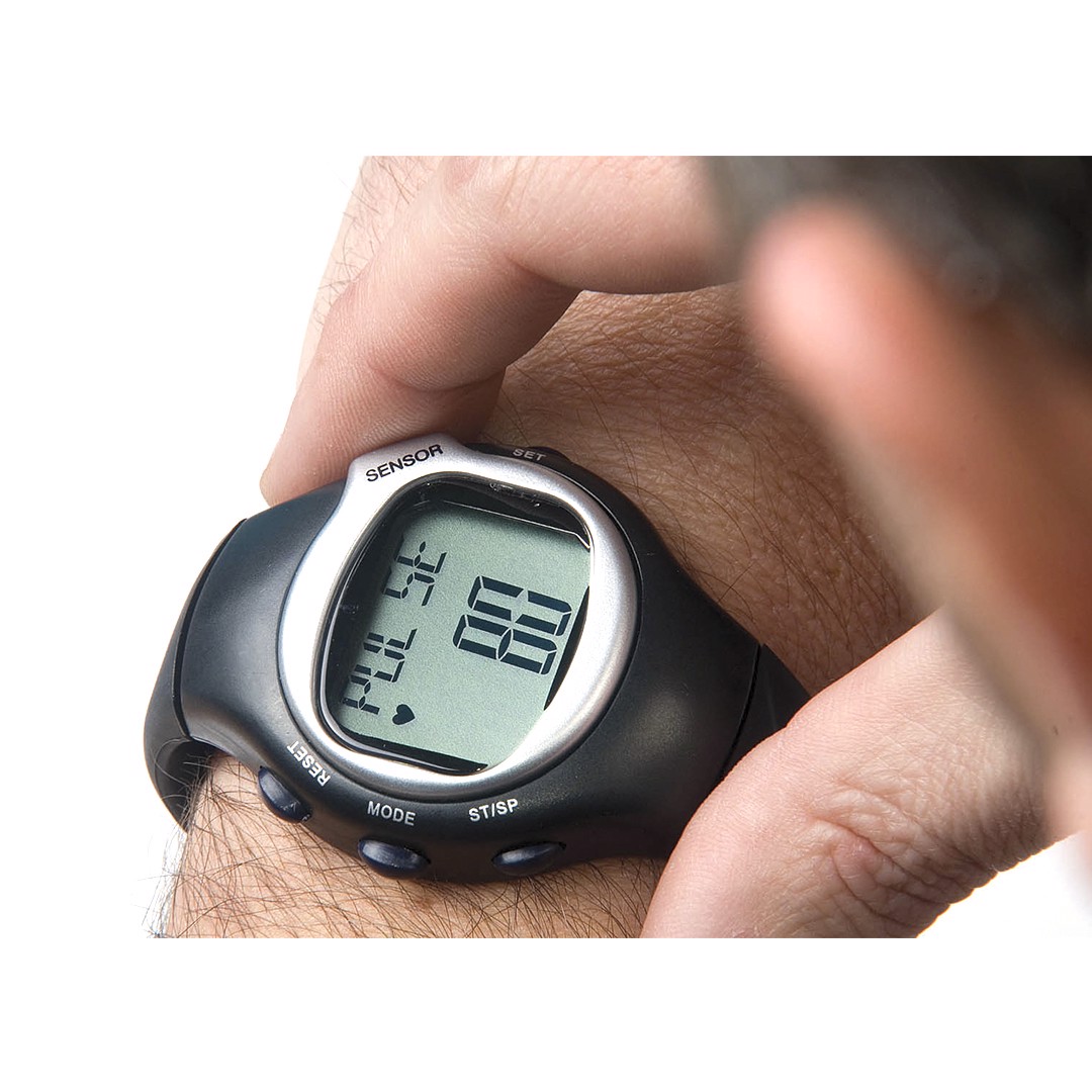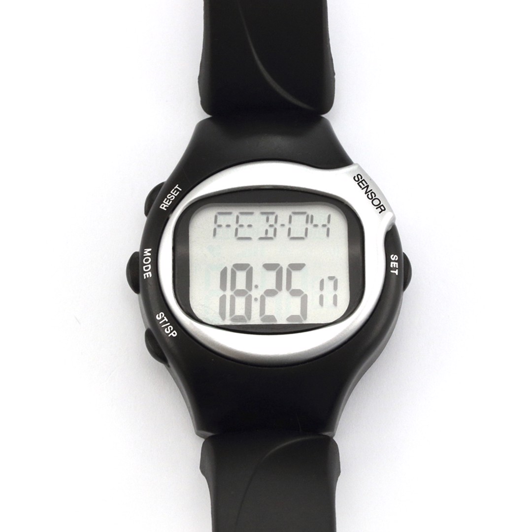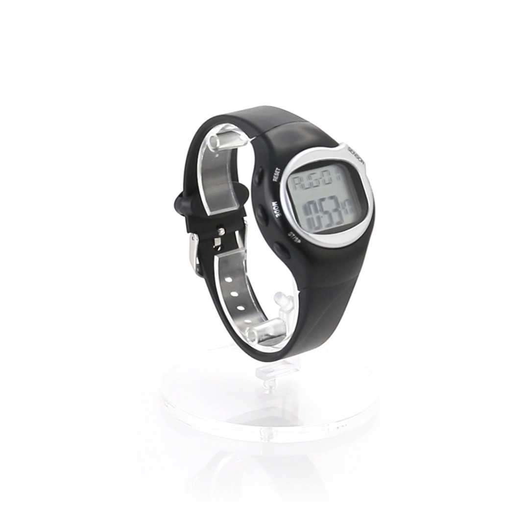 Bold design, sports digital pulse watch with LCD display. Comfortable adjustable strap and water splash resistant. Suitable for all types of sports and leisure activities. Date and time, pulsometer, stopwatch and pedometer functions. With button cell included and presented in an individual box.