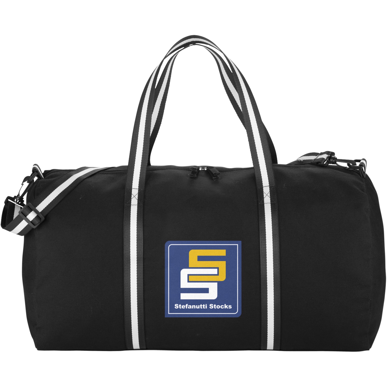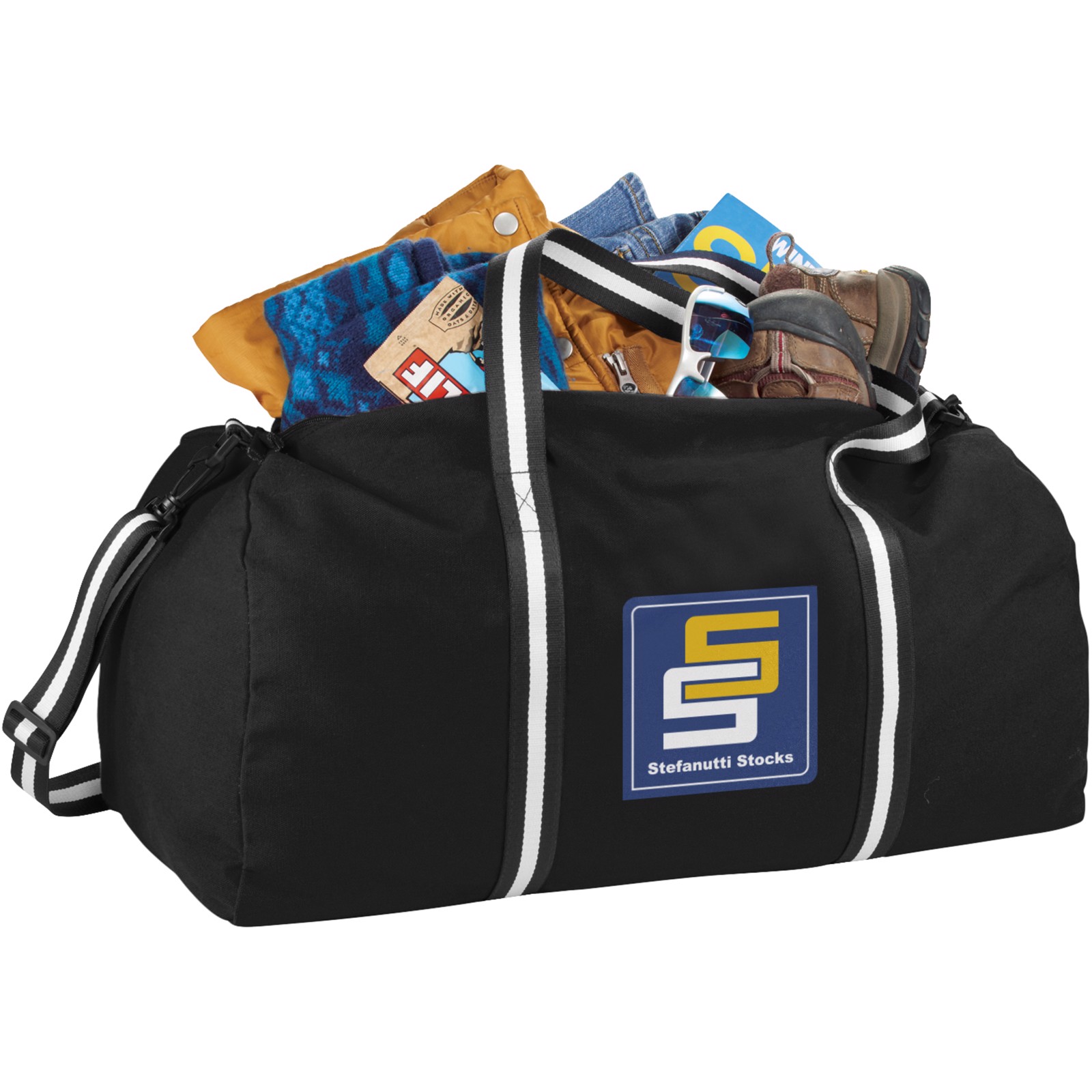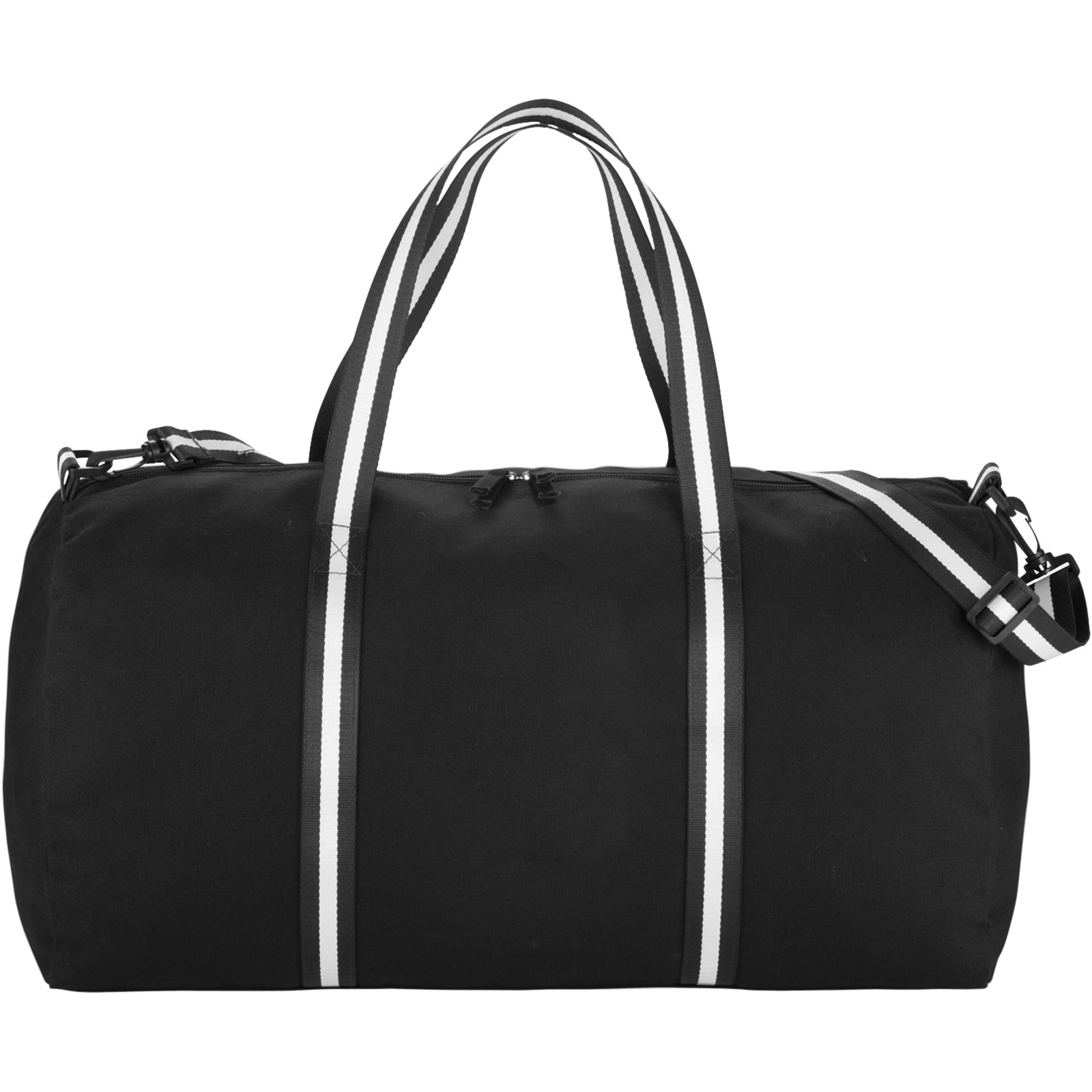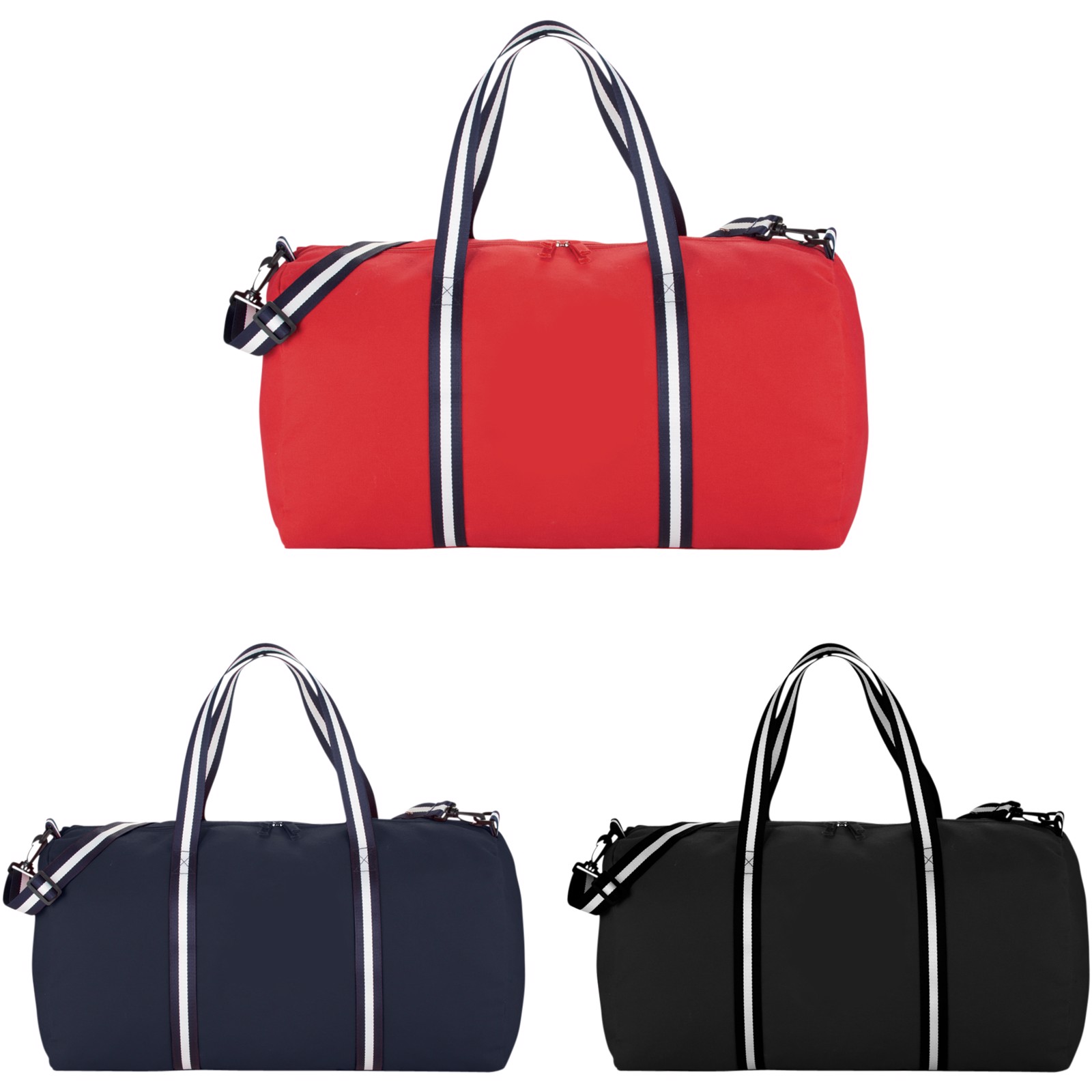 This iconic cotton weekender style is the perfect travel bag for your next adventure. Contrast stripe cotton webbing gives this classic a fresh look. Large zipped main compartment will hold all your clothes and gear. Detachable, adjustable striped cotton shoulder strap.