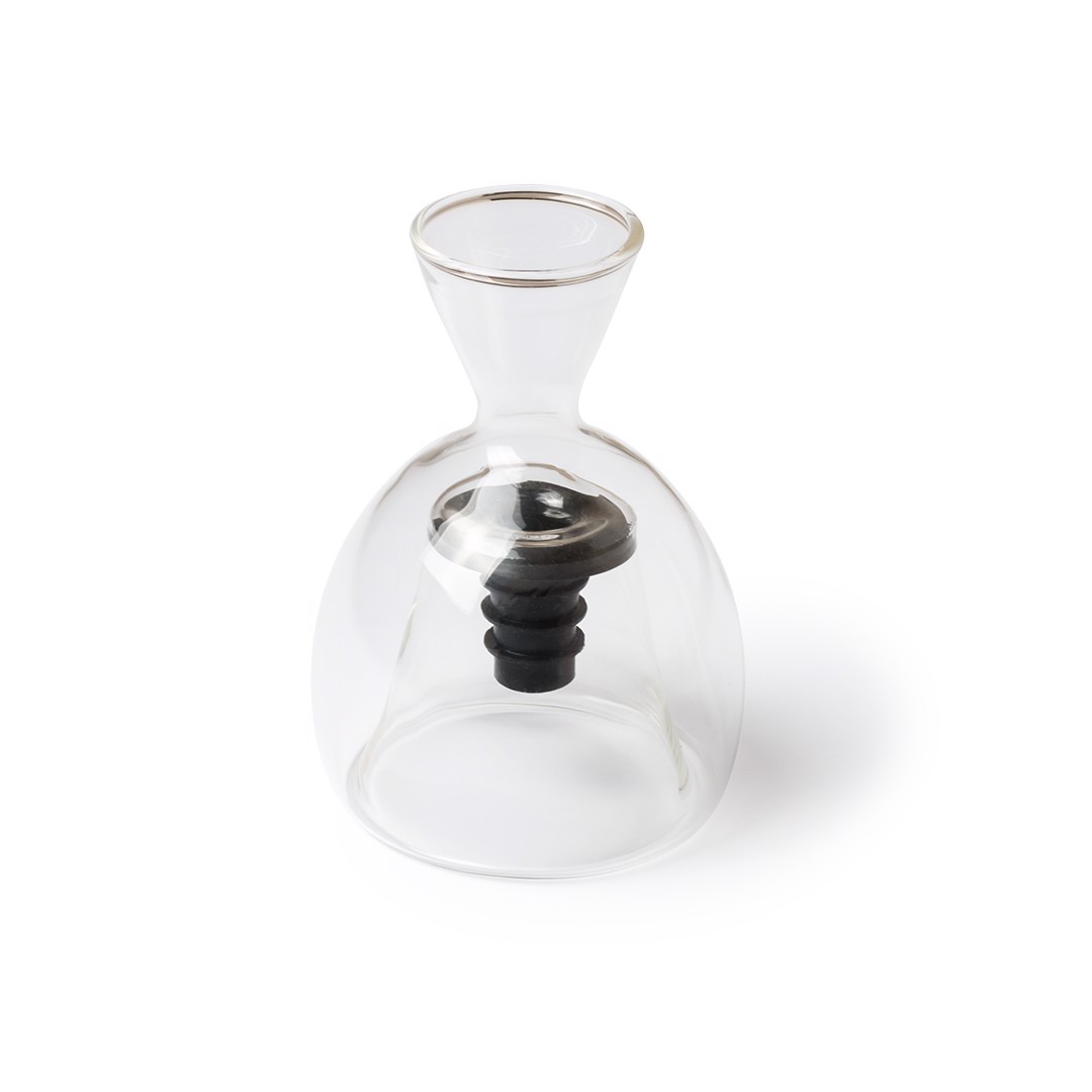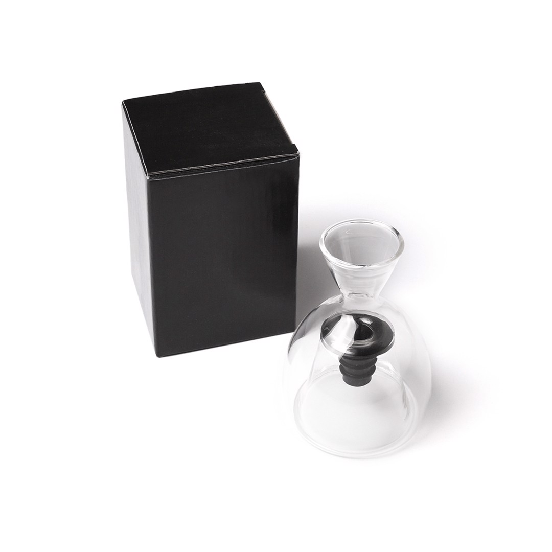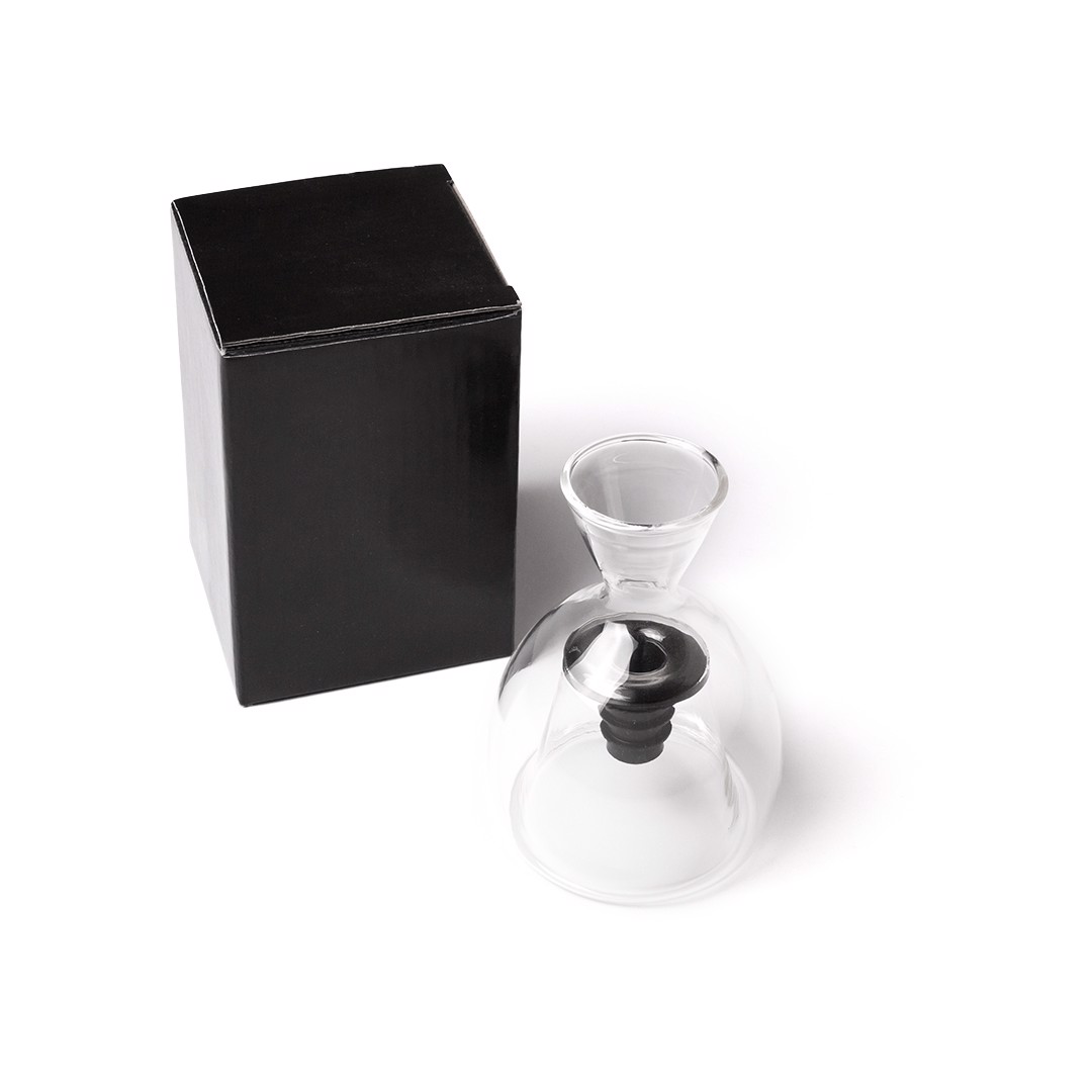Decanter for wine in blown glass, with security adjustment and presented in an individual box.