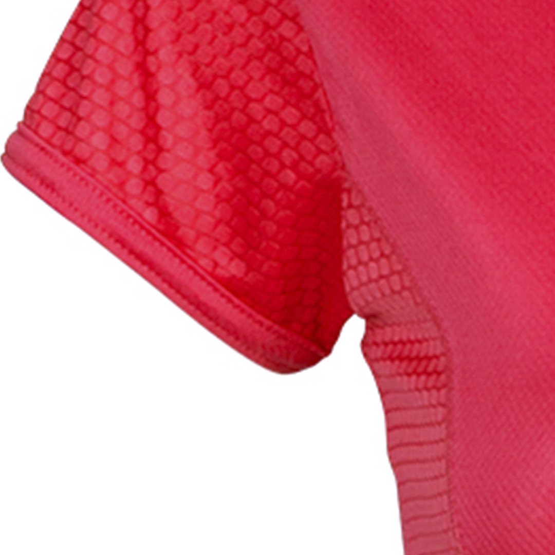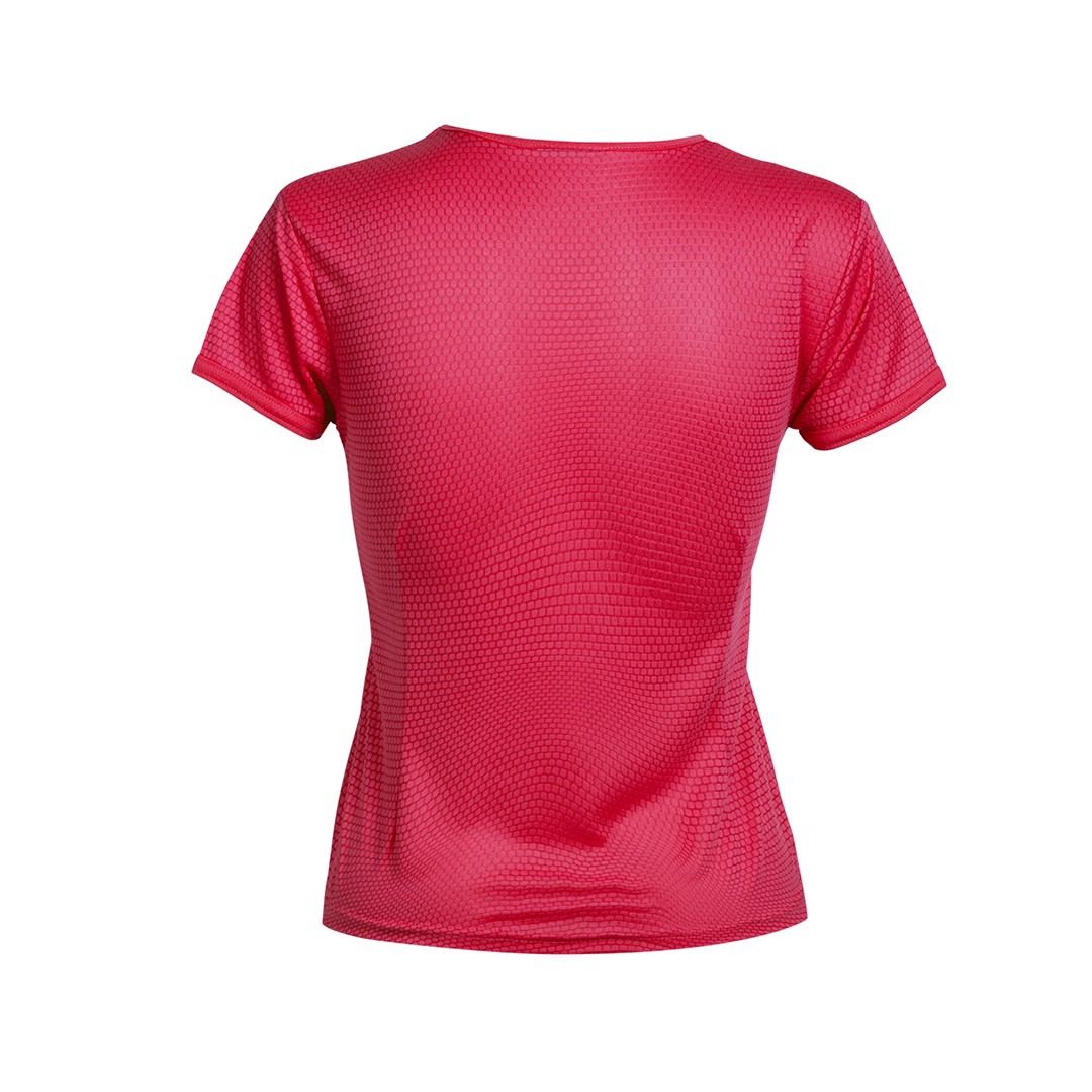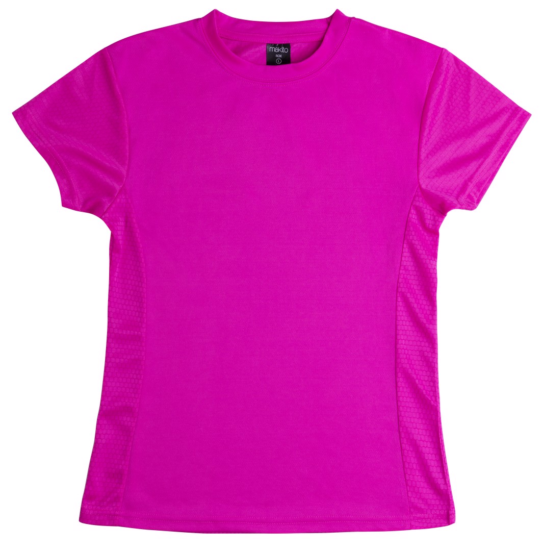 Technical T-shirt for girls. Made of 100% breathable 135g/m2 polyester material and with hexagonal weave design. Available in a wide range of bright tones and in sizes S, M, L. Breathable. Sizes: S, M, L, XL
