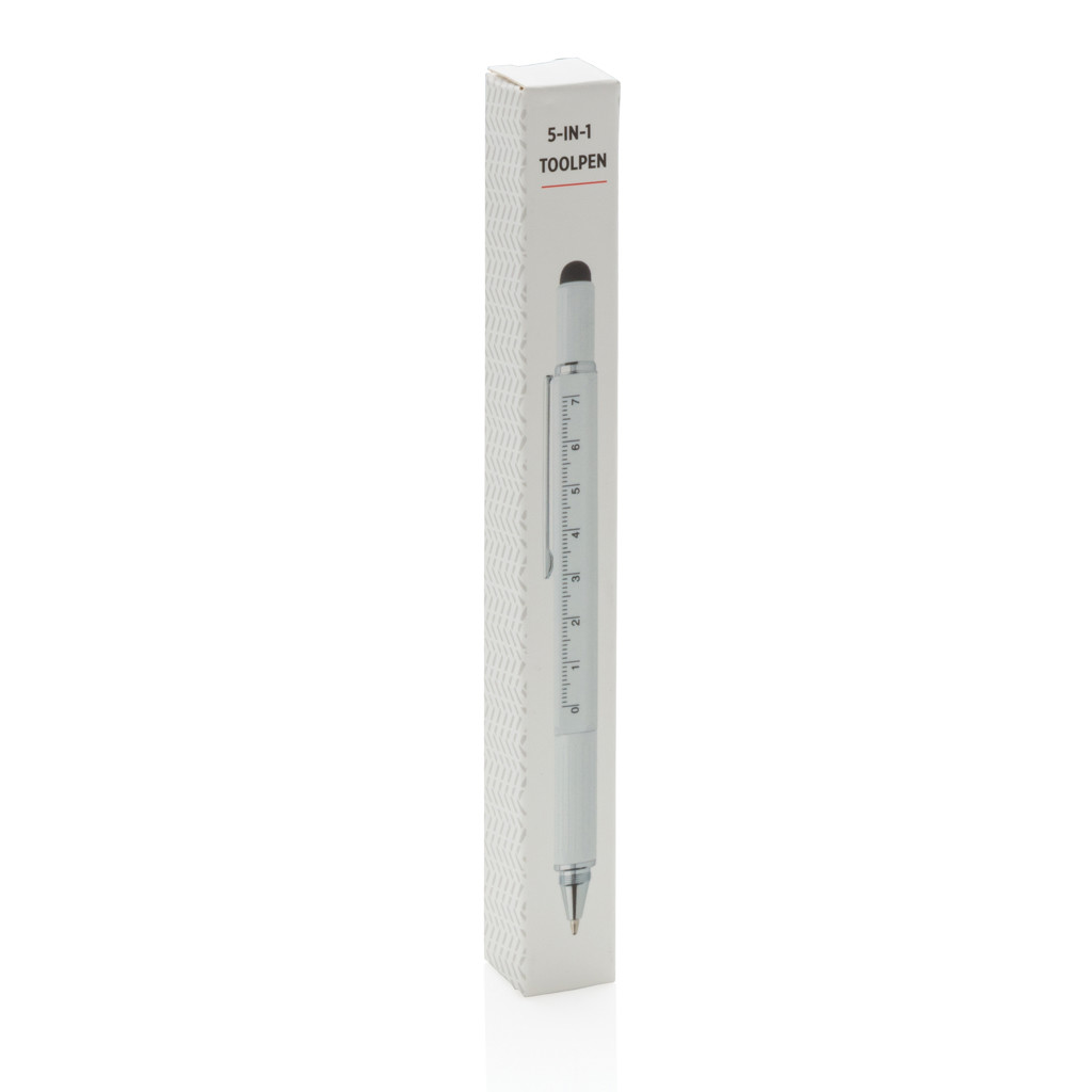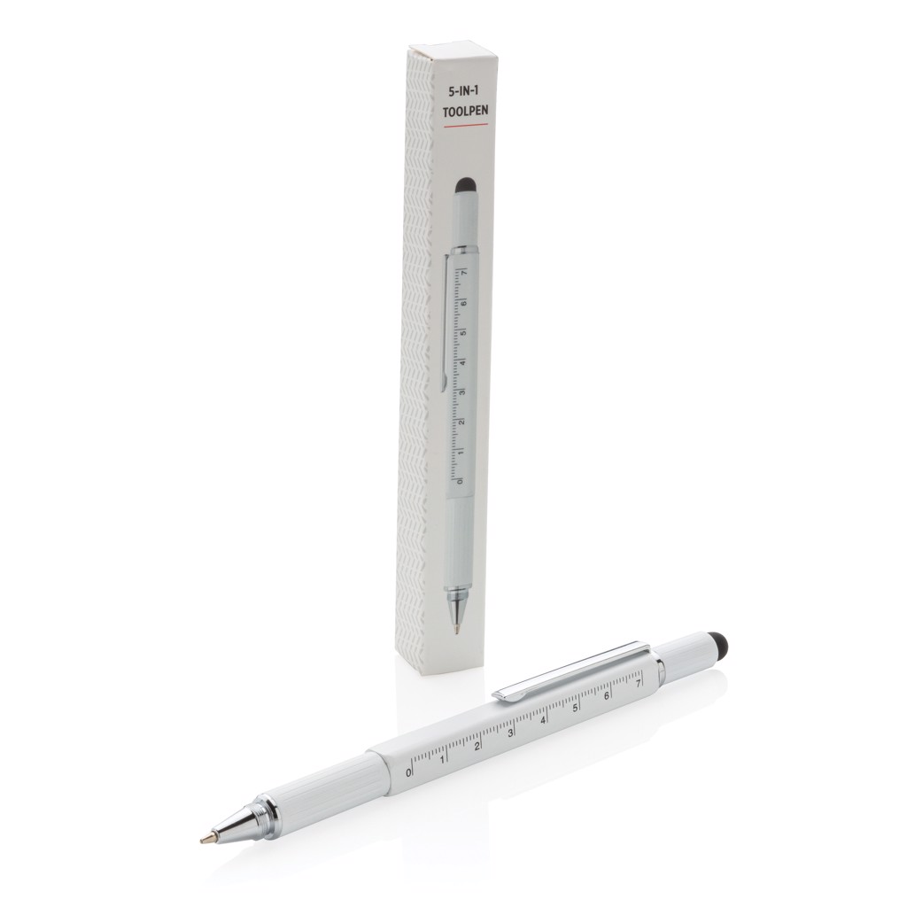 Multifunction pen with ruler (7cm) , spirit level, screw driver, stylus tip and ballpoint with blue writing ink (up to 400m) Made out of high quality brass material with aluminium clip.