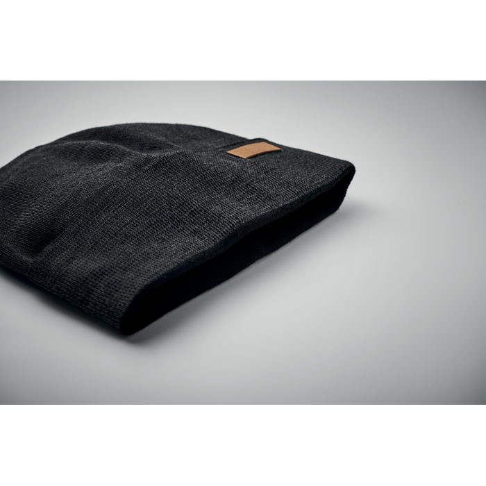 Unisex Acrylic double sided beanie with 30% reflective tape with label for printing area. For promotional use only.