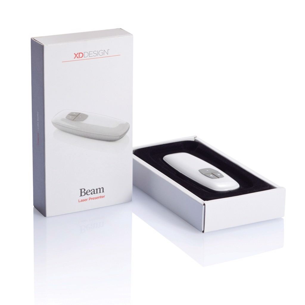 Beam is a high end radio frequency presenter which lets you run through your presentation with the page up & down button and gives you the ability to highlight with the laser button. Including black XD Design travel pouch. Registered design®