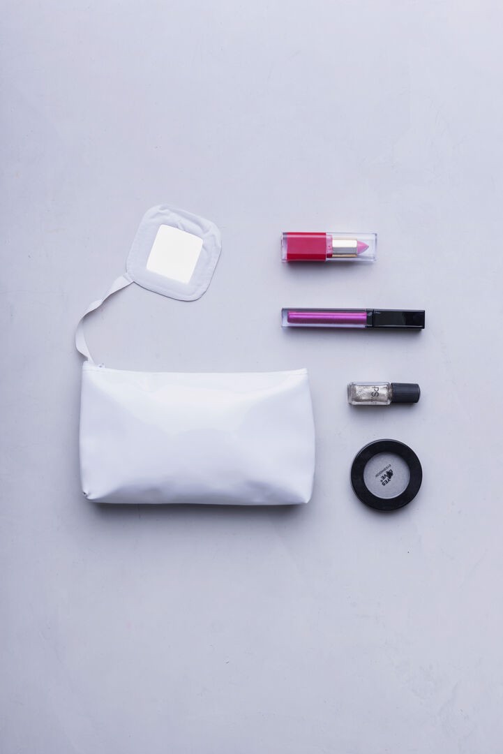 Multi purpose beauty bag in resistant PVC material in bright tones. With inside mirror and matching color zipperclosure. Mirror Included