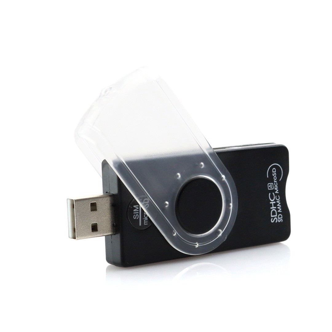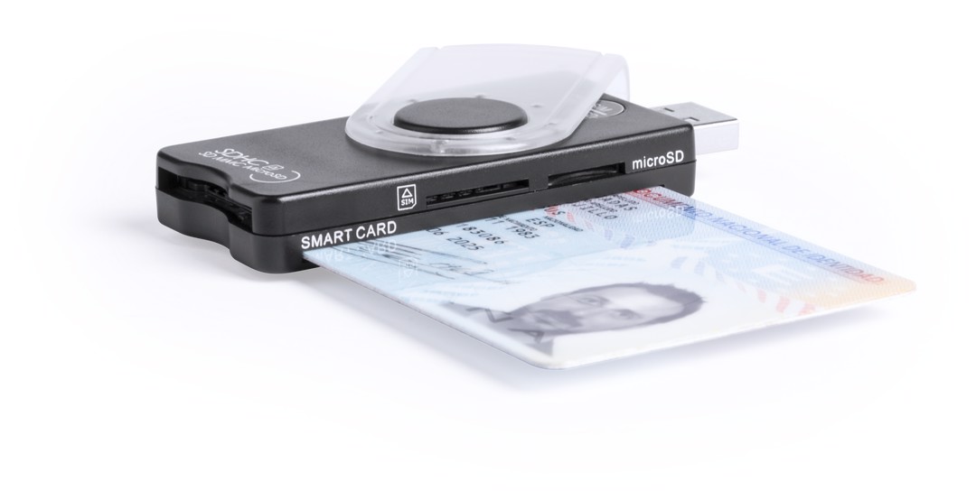 Practical DNI/Smart Card reader with USB 2.0 connection. With twist opening and minimalist design, it also integrates slots for memory cards such as MS, M2, SD, MiniSD, SmartCard, SIM and MicroSD. Compatible with Windows and OSX. Presented in an individual cardboard box in satin black finish. USB 2.0. Cards: MS, M2, SD, MiniSD, Smart Card, SIM, MicroSD