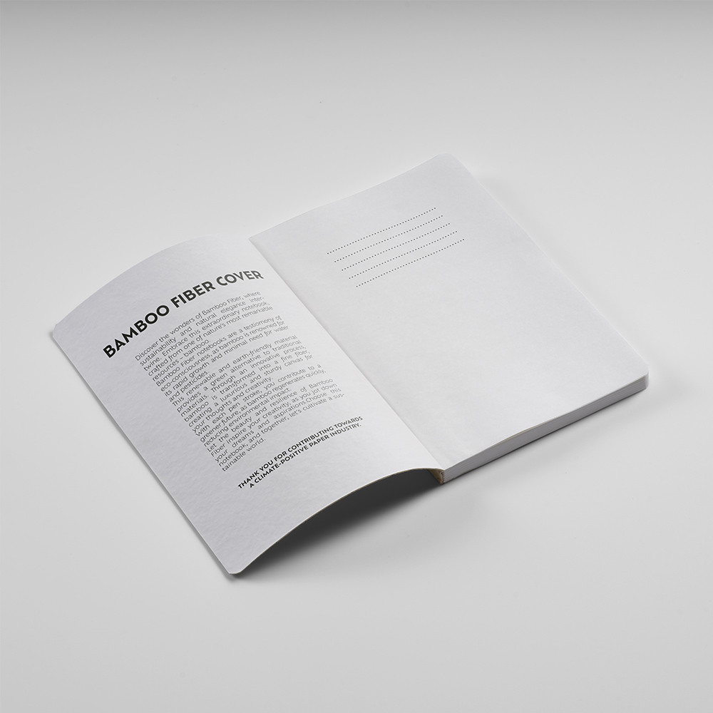 Cervantes A5 notebook from bamboo fibre. Its 196 recycled 70gsm dotted pages with a section for date and page reference, await your inspiration. The perfect combination that promises style and practicality. Supplied in an individual kraft sleeve.