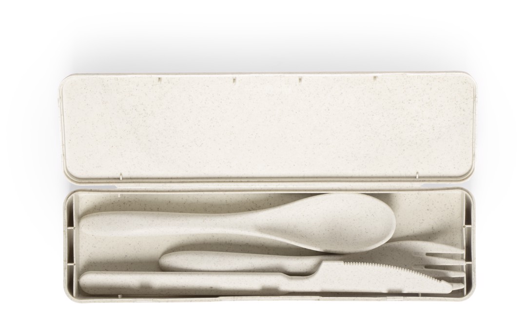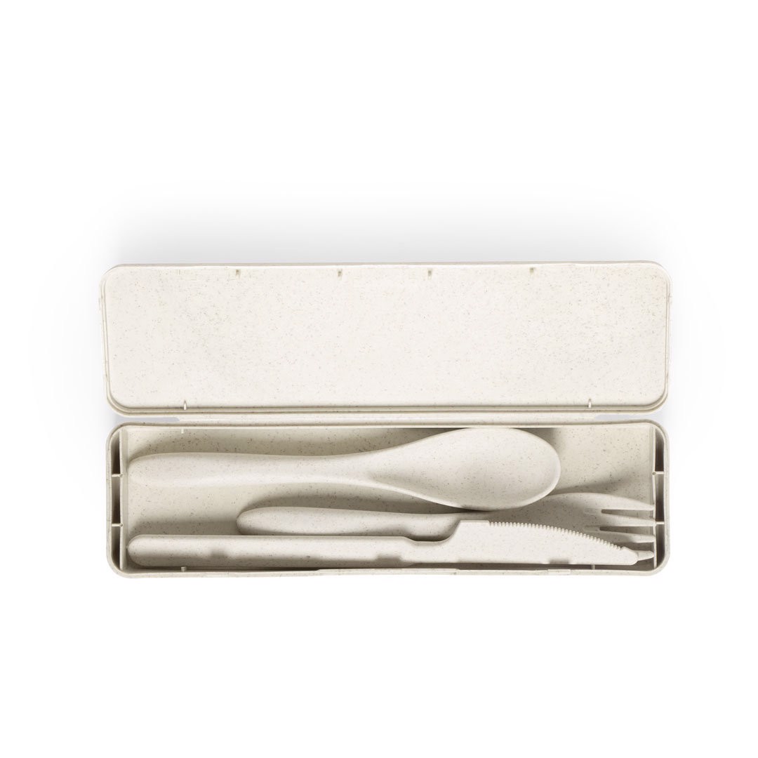 Set of cutlery in nature line. Made of bamboo fibre, including fork, spoon and knife. BPA free and presented in a bamboo fibre case. 3 Pieces