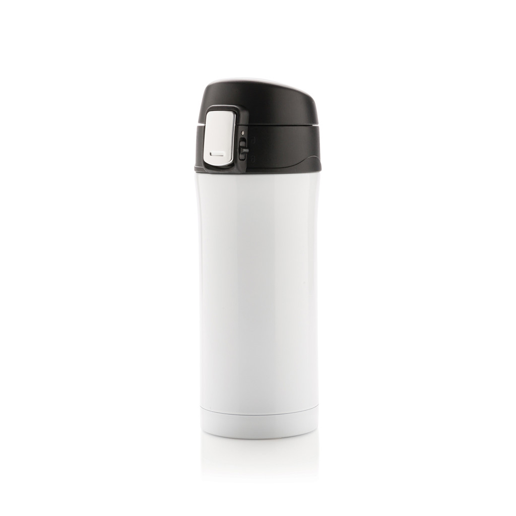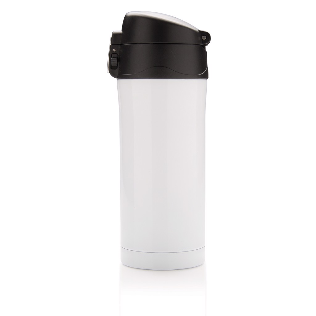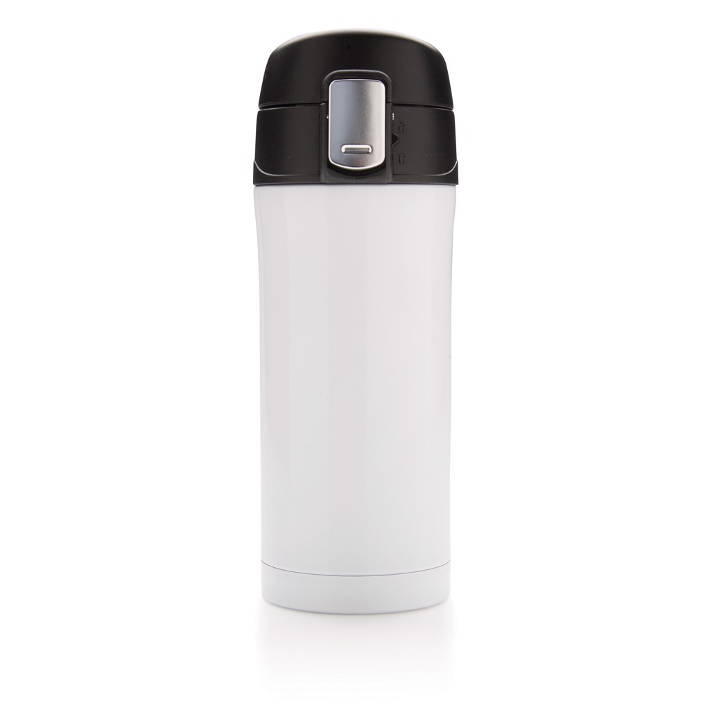 Double wall stainless steel vacuum mug that keeps your drink warm for up to 5 hours or cool up to 15 hours. The lid is lockable and therefore avoids any risk of leaking or spilling. The lid is easy to keep clean for optimal hygiene and can even be washed in the dishwasher. The unique design of the mug allows you to drink conveniently and safely with one hand directly from the mug. The size of the mug is suitable to place in any car drink holder. Capacity: 300 ml.