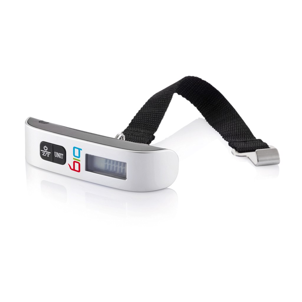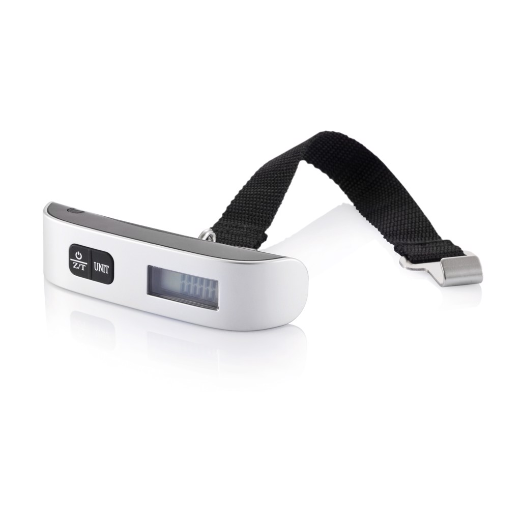 Electronic luggage scale, max capacity 50kg, division 50g, zero and tare function, low battery and overload function, room temperature display, one 3V lithium battery included.