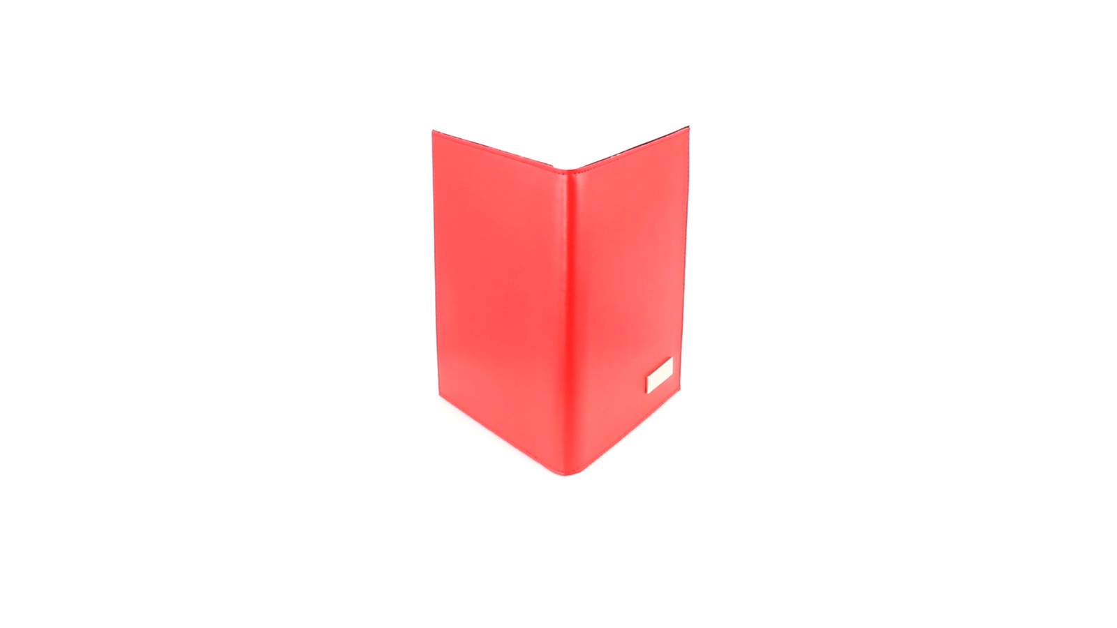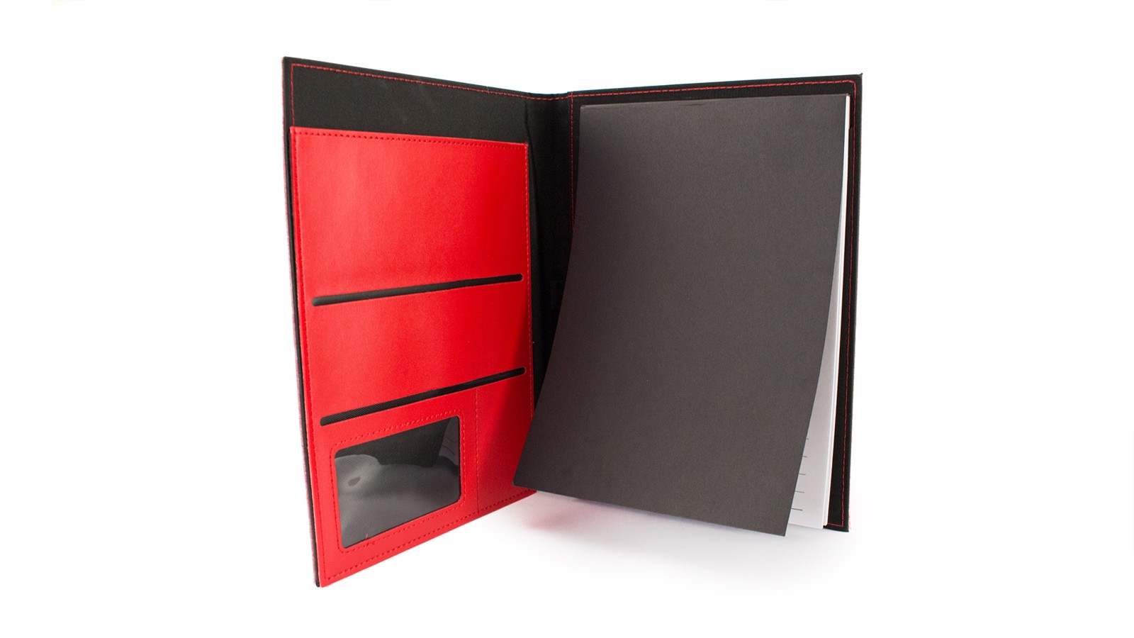 Folder in bright tones in soft PU leather, with outside metal plate especially designed for laser printing. Matching color inside with notepad of 20 sheets with striped layout, 4 pockets and pen holder. 50 Sheets Notepad