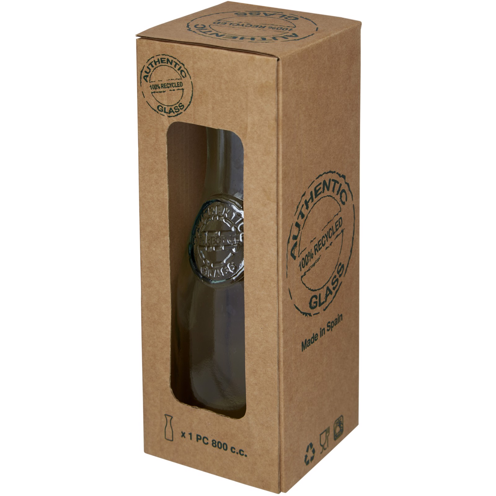 800 ml recycled glass carafe made from 1.5 glass bottles. Recycled glass is manufactured using less energy, raw material, and additives, than what is required for making traditional glass.