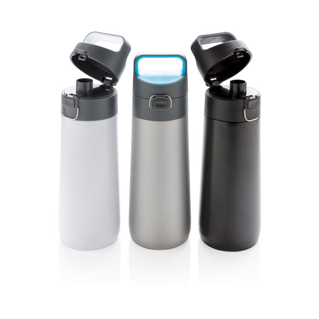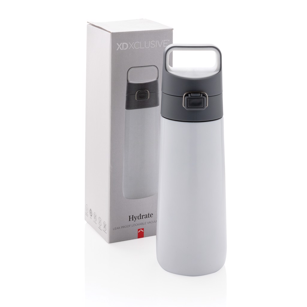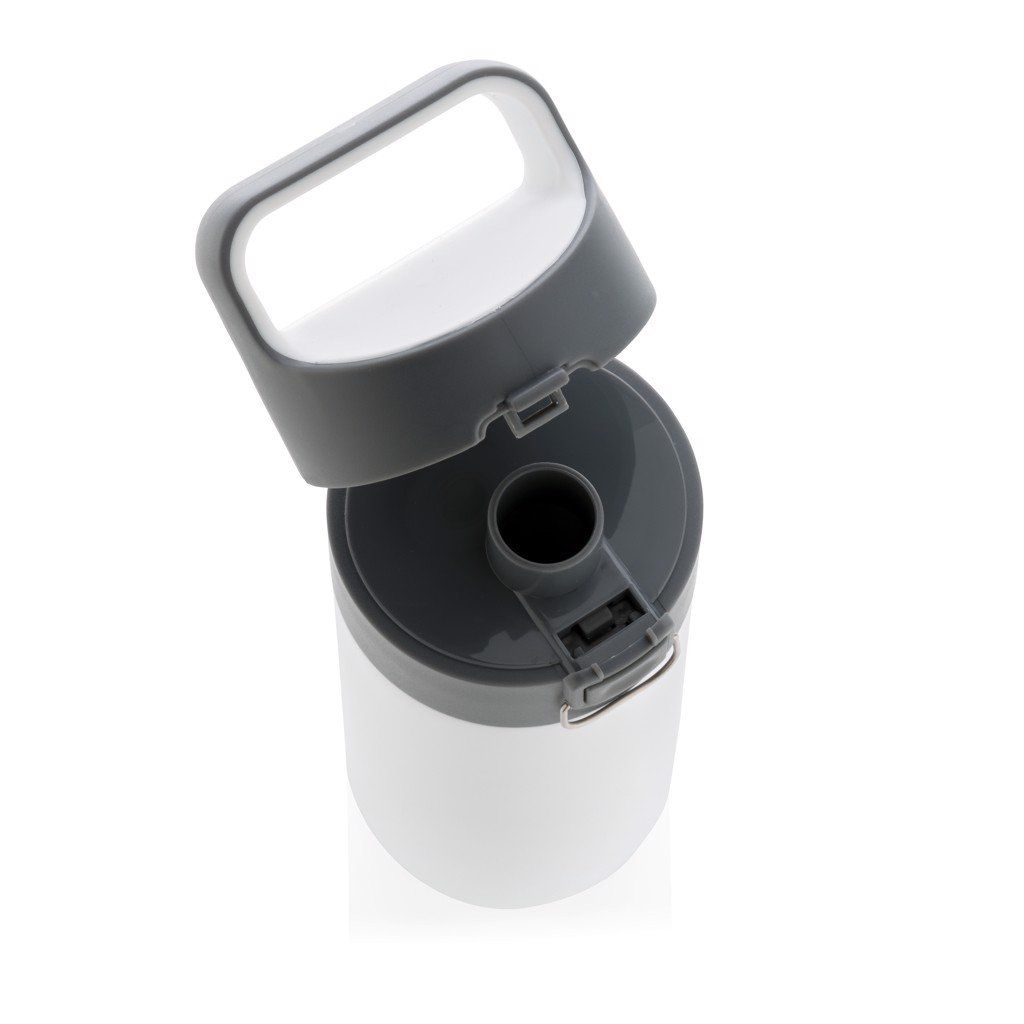 Leak proof vacuum lockable bottle with handle. Content: 450ml. Registered design®