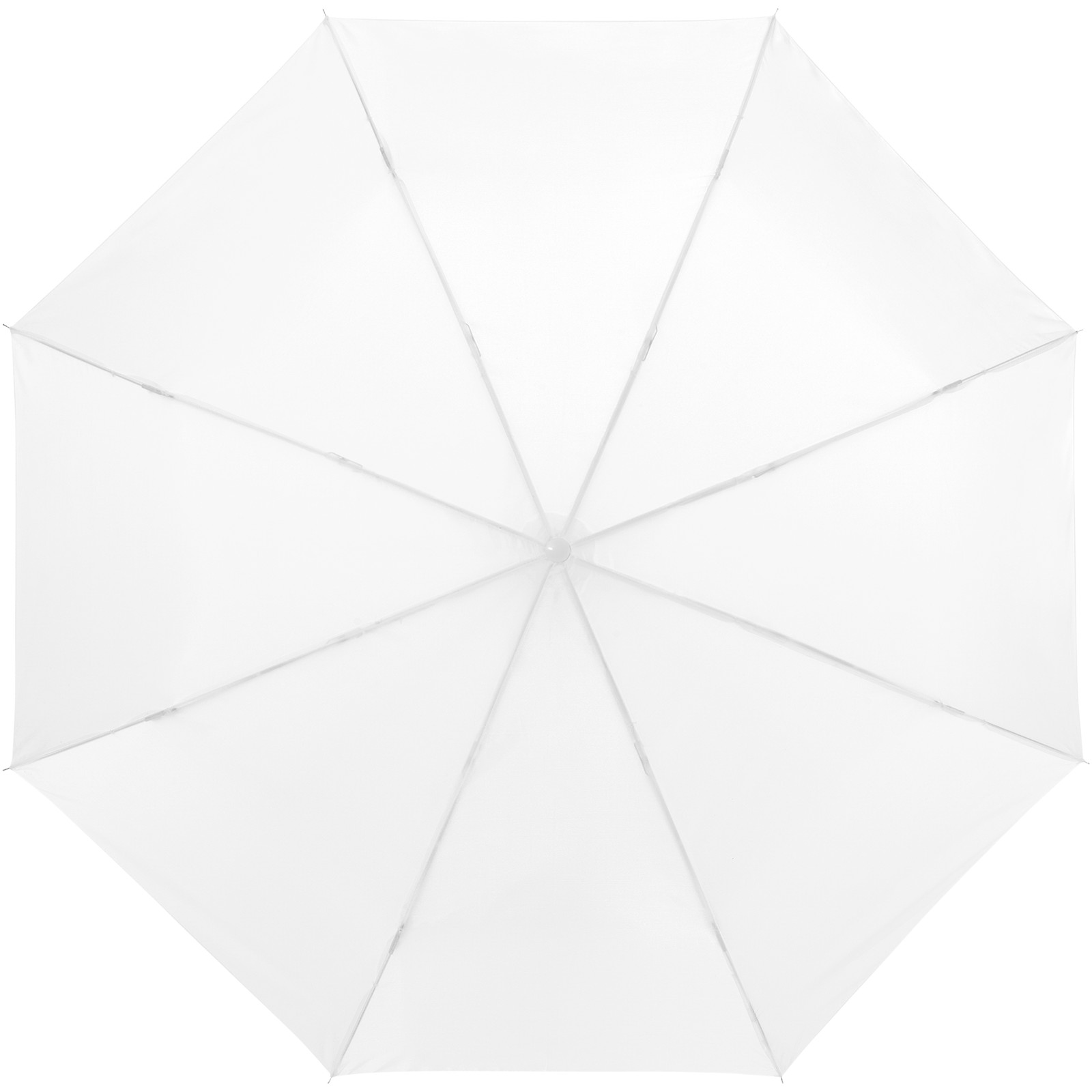 The Ida 21.5\" foldable umbrella is small and compact but does an excellent job of protecting against the rain. The manual slide system makes the umbrella easy to open and close. Furthermore, the umbrella has a strong metal frame, metal ribs and a plastic handle for a good grip. Thanks to it's size when folded it will fit perfectly in a (hand)bag. The Ida umbrella is made of durable polyester, is suitable for multiple printing options and comes with a pouch for easy storage.