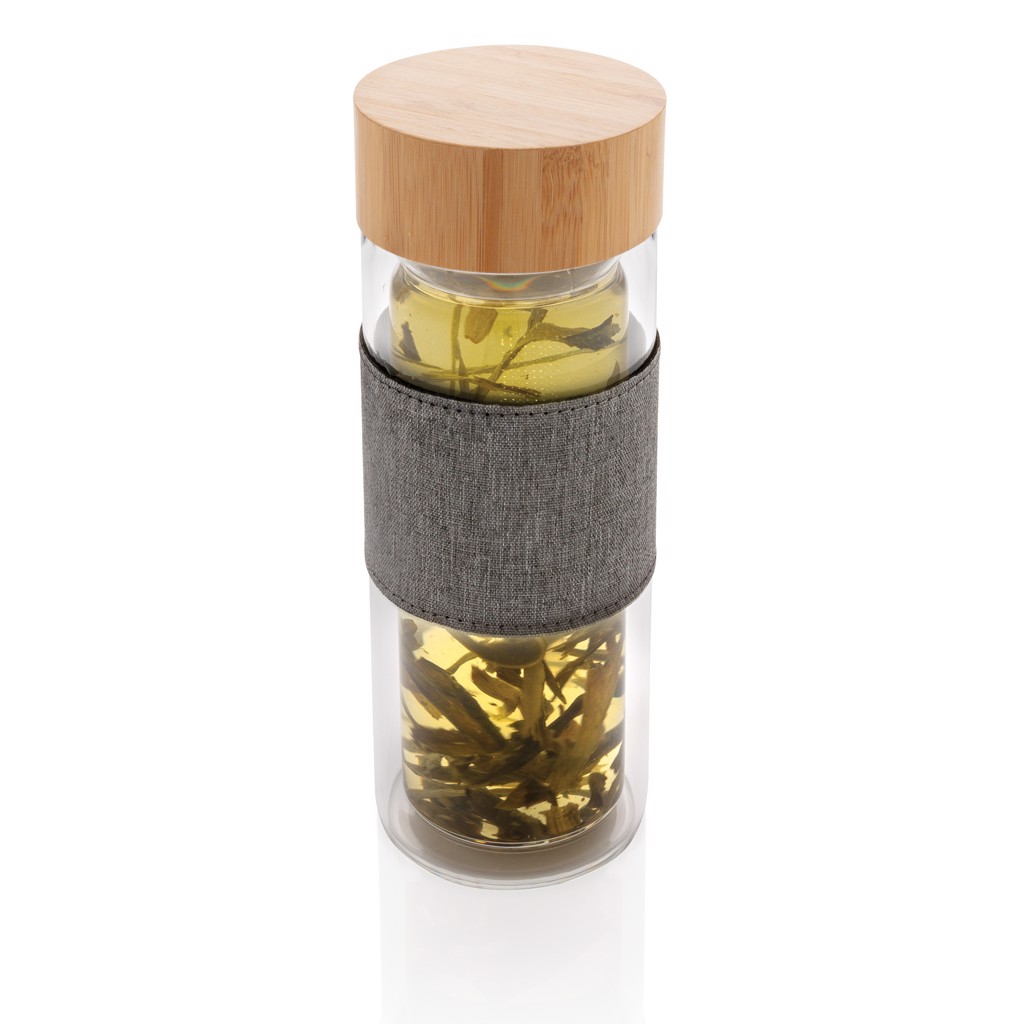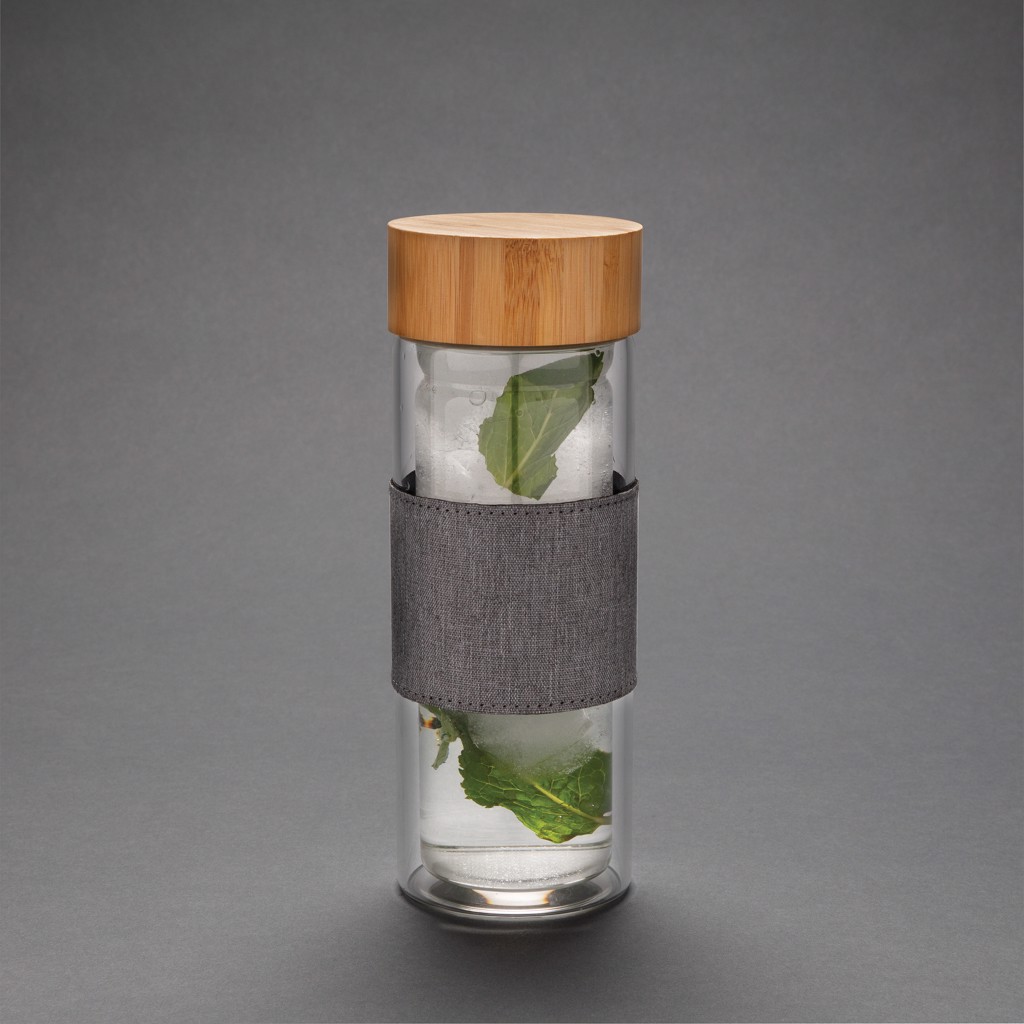 No more buying plastic water bottles from the shops but reuse your own durable bottle from the Impact Collection. By using durable glass and stainless steel materials you improve the re-usability of products compared to single use products. With the focus on water, 2% of proceeds of each sold Impact product will be donated to Water.org. Supporting your sustainable lifestyle, the Impact double wall glass bottle with bamboo lid reduces your plastic waste and improves your hydration habits. Made of borosilicate premium-quality glass, this double wall bottle is extra resistant to big thermal changes, so it's safe to carry your hot tea too. A beautiful sleeve completes the look. Capacity 360ml. BPA free.