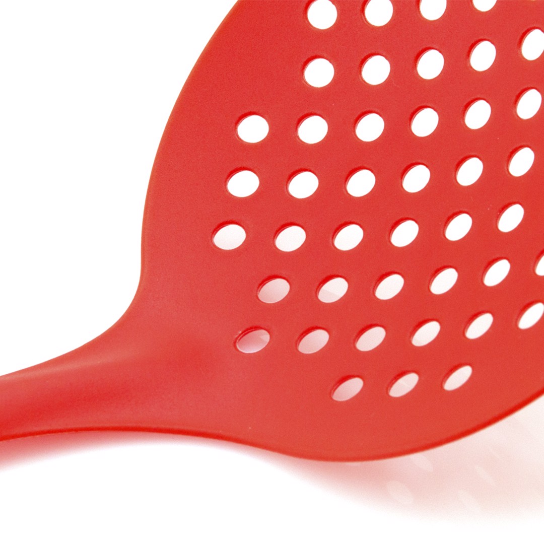 Kitchen skimmer in a fun range of bright tones. With long die-cut handle for hanging.