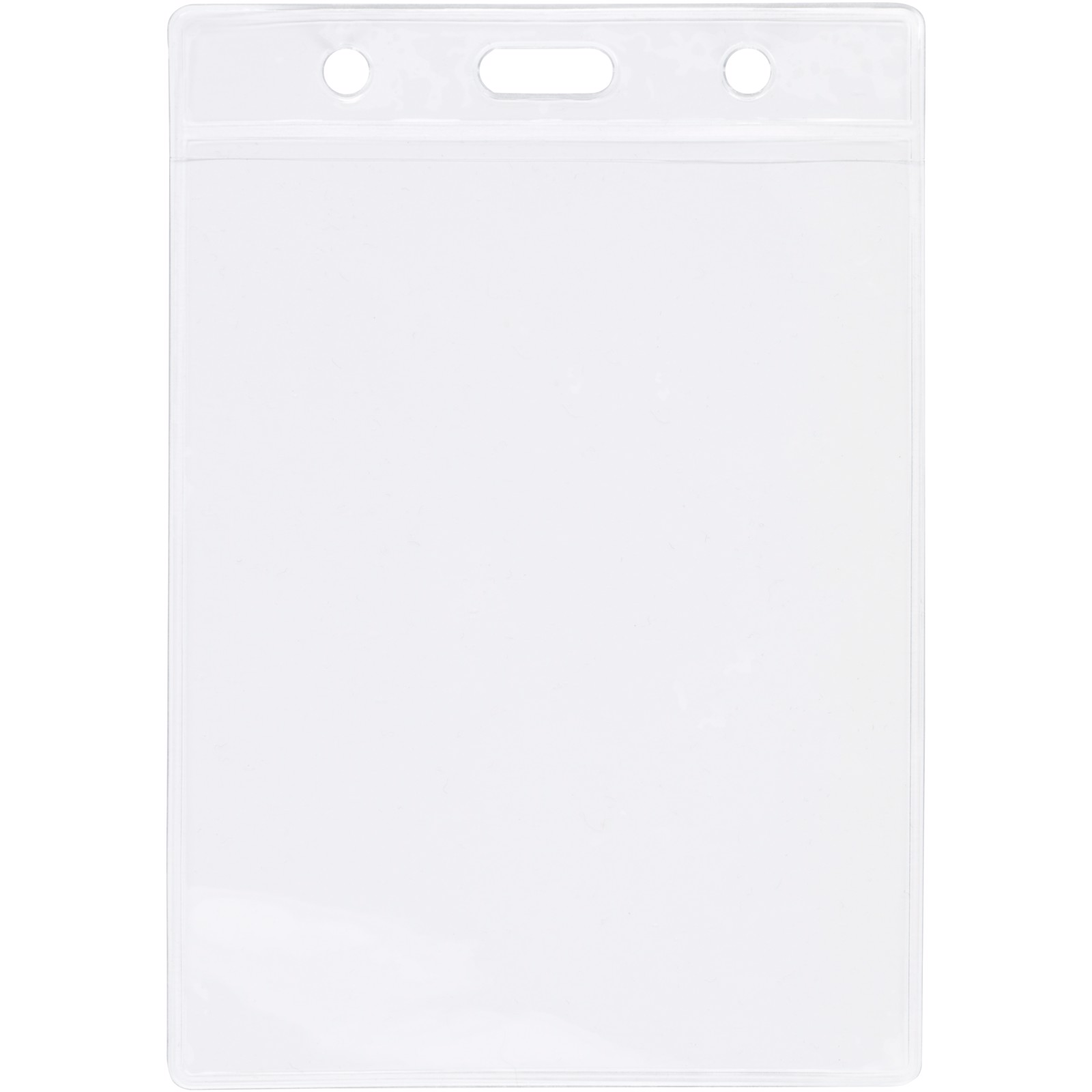 Badge holder with insert on the back and opening on top to attach to a lanyard or roller clip. This item fits a card of 9,4 x 8,3 cm.