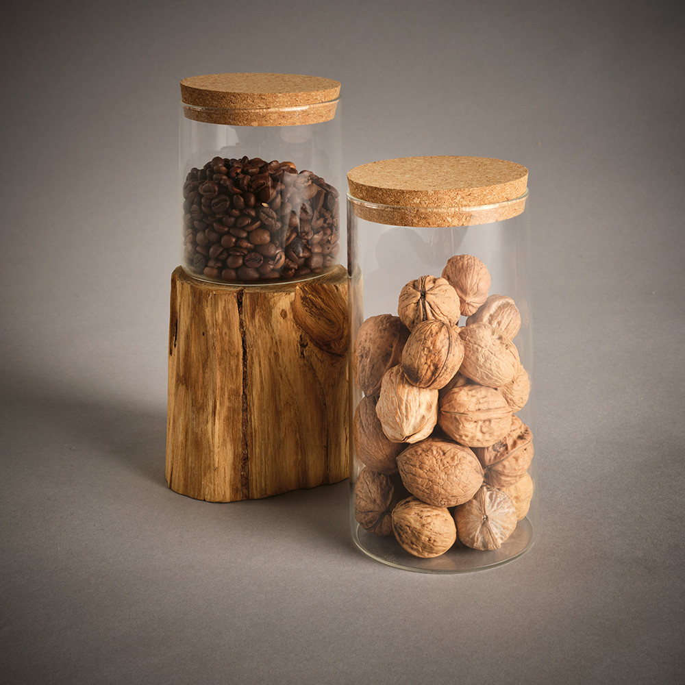 Magritte 500 canister has capacity for 580ml (500ml net) and is crafted from borosilicate glass and crowned with a cork lid. From grains to sweets, it keeps your treasures fresh, safe and stylish. Individually packed in a kraft box.
