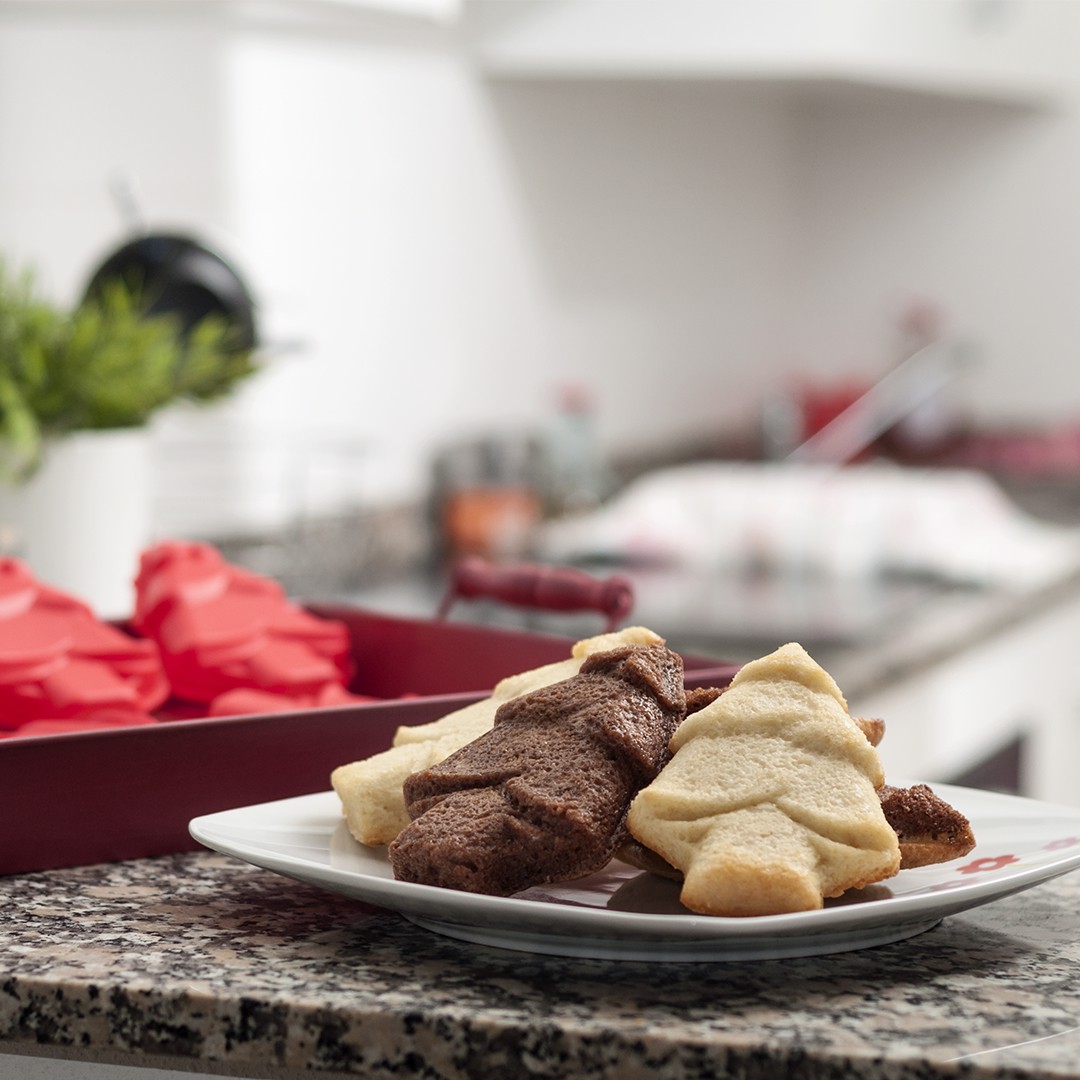 Silicone mold in bright Christmas red color with Christmas tree shape. Resistance to temperatures up to 240ºC. Maximum Temperature 240°C
