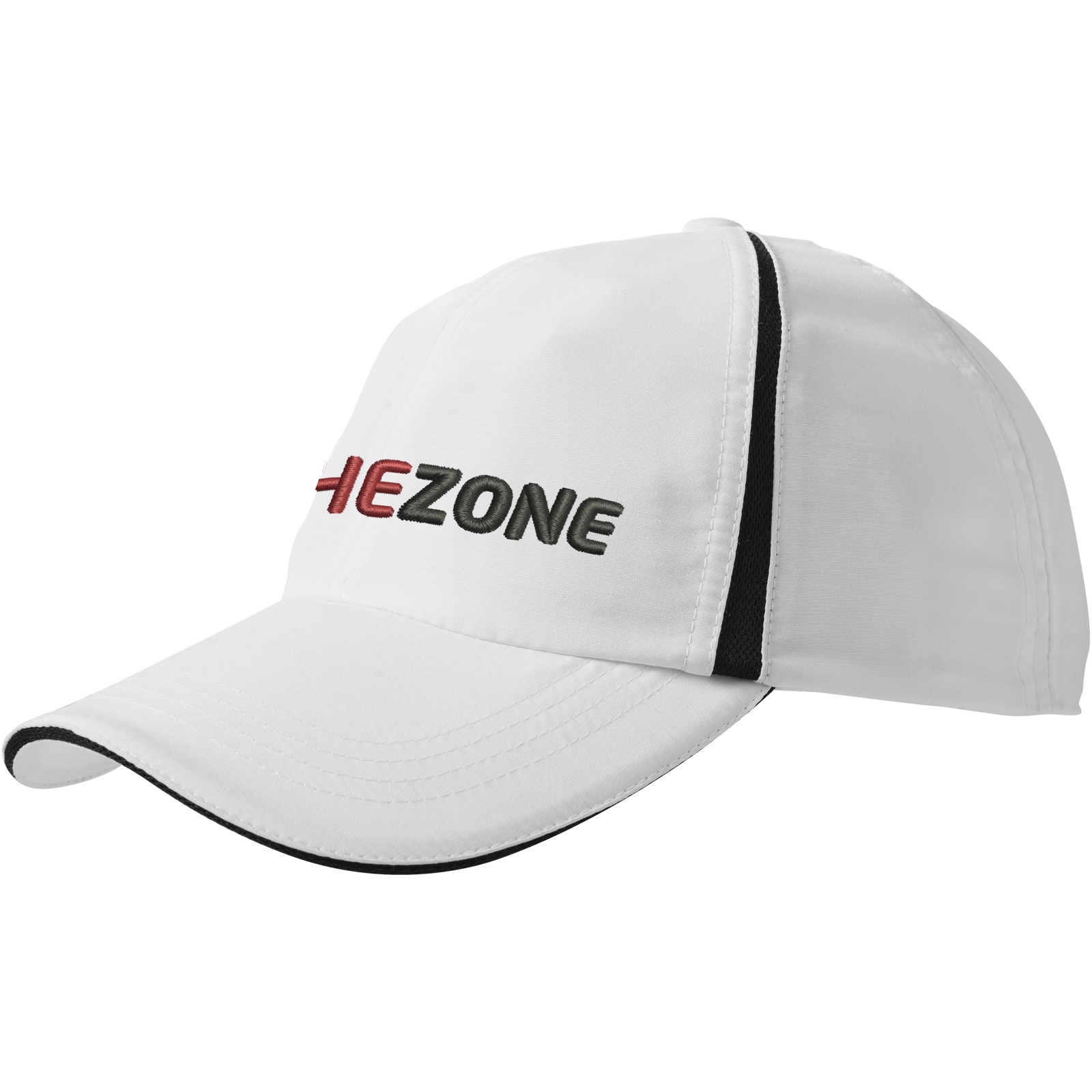 Pre-curved visor with sandwich. Side panels in mesh fabric. Fabric hook and loop fastener with rubber logo tab. Head circumference: 58 cm.