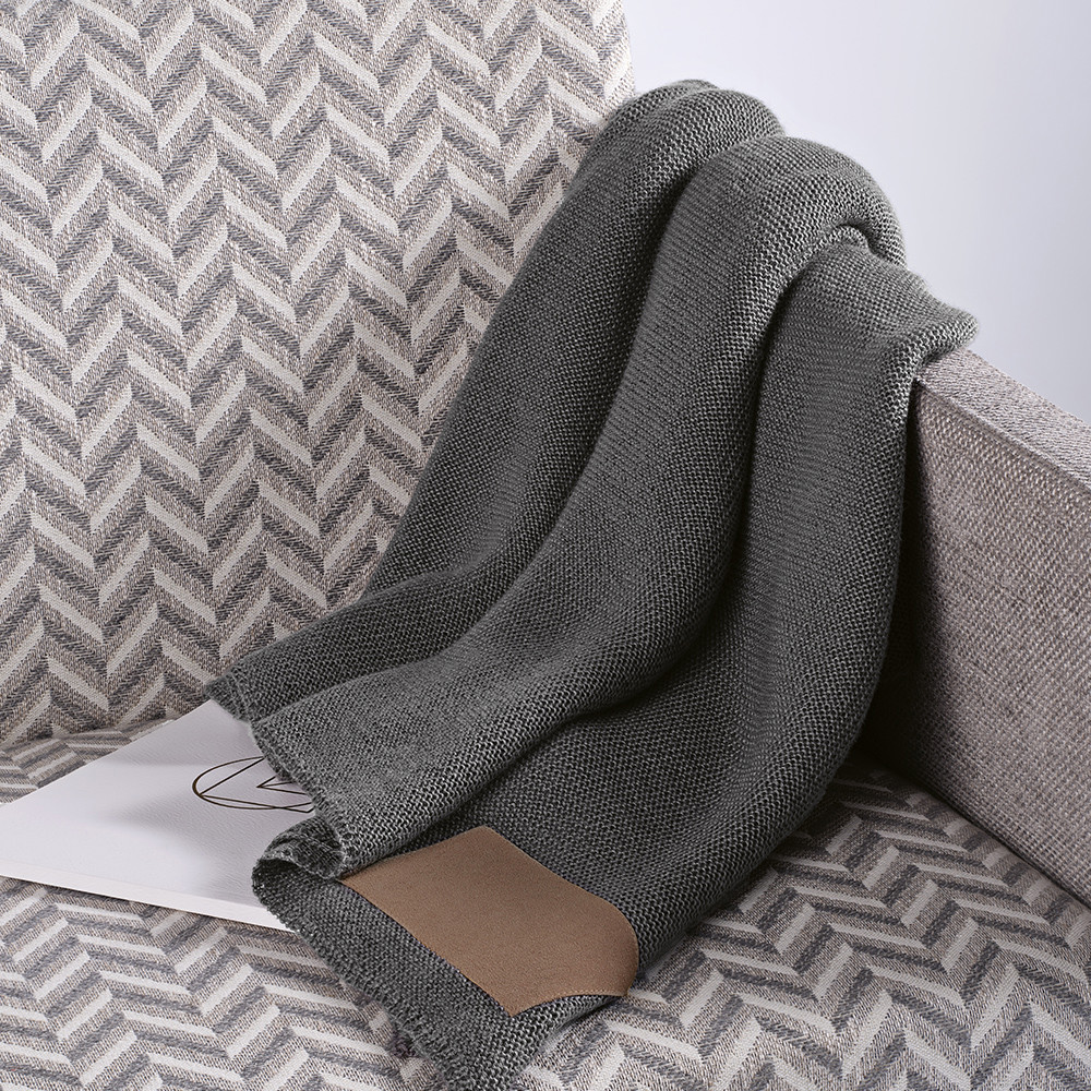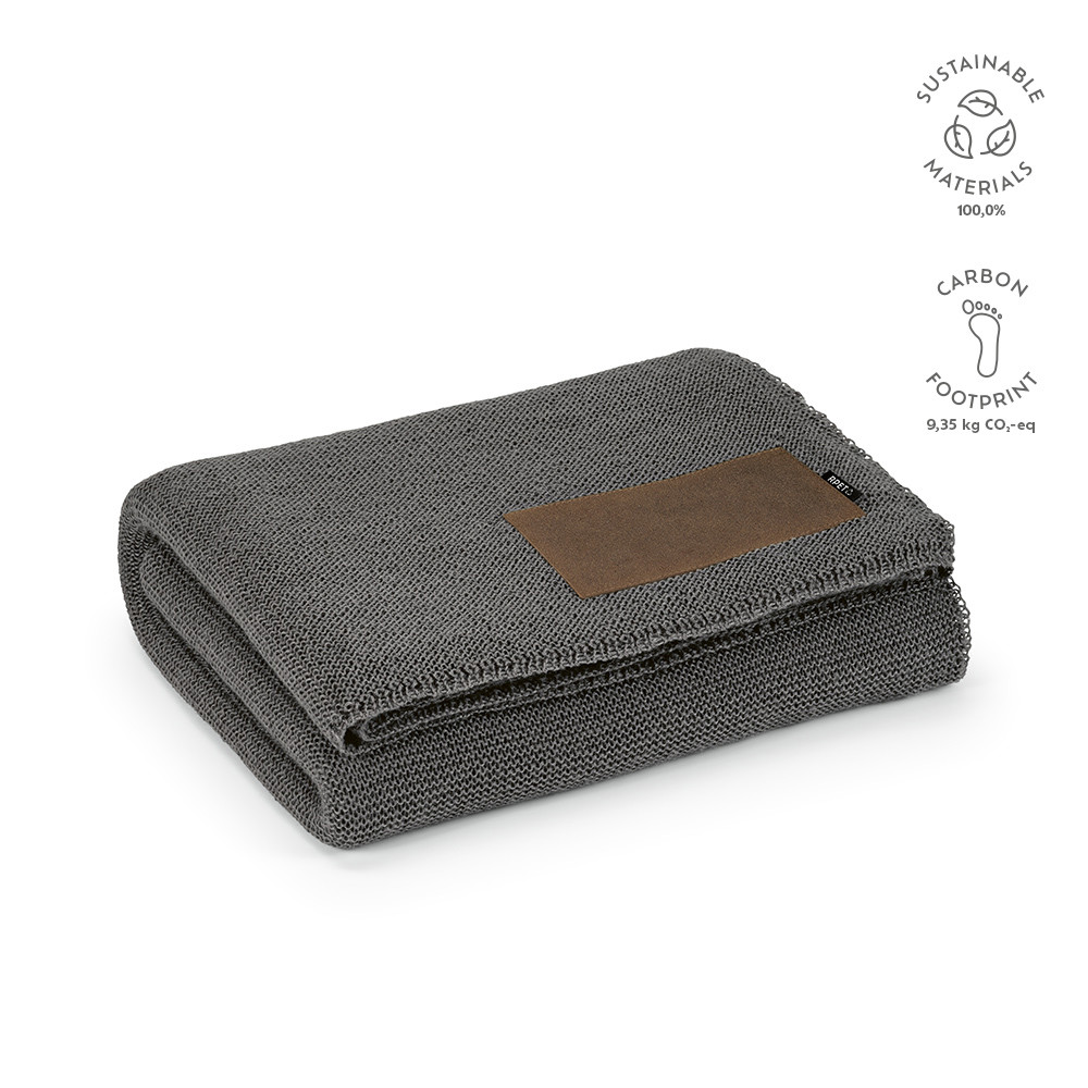 Mondrian Blanket in 270gsm wool (15%) and rPET (85%). Sized at 120x160 cm, it comes packed in a recycled cotton bag and features a dedicated customizable patch (15x8cm). Embrace comfort and custom style.