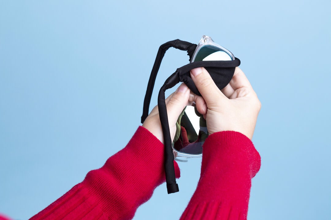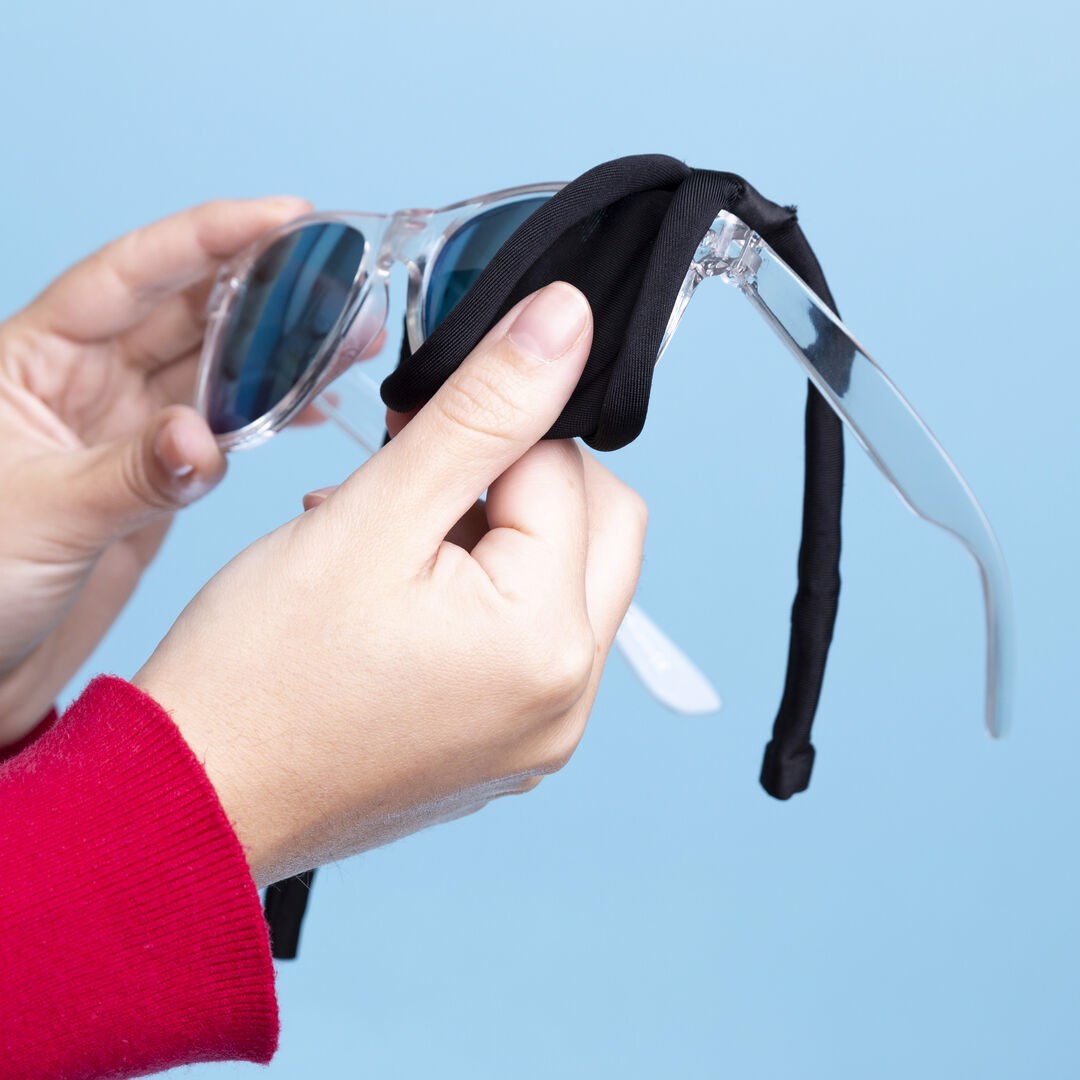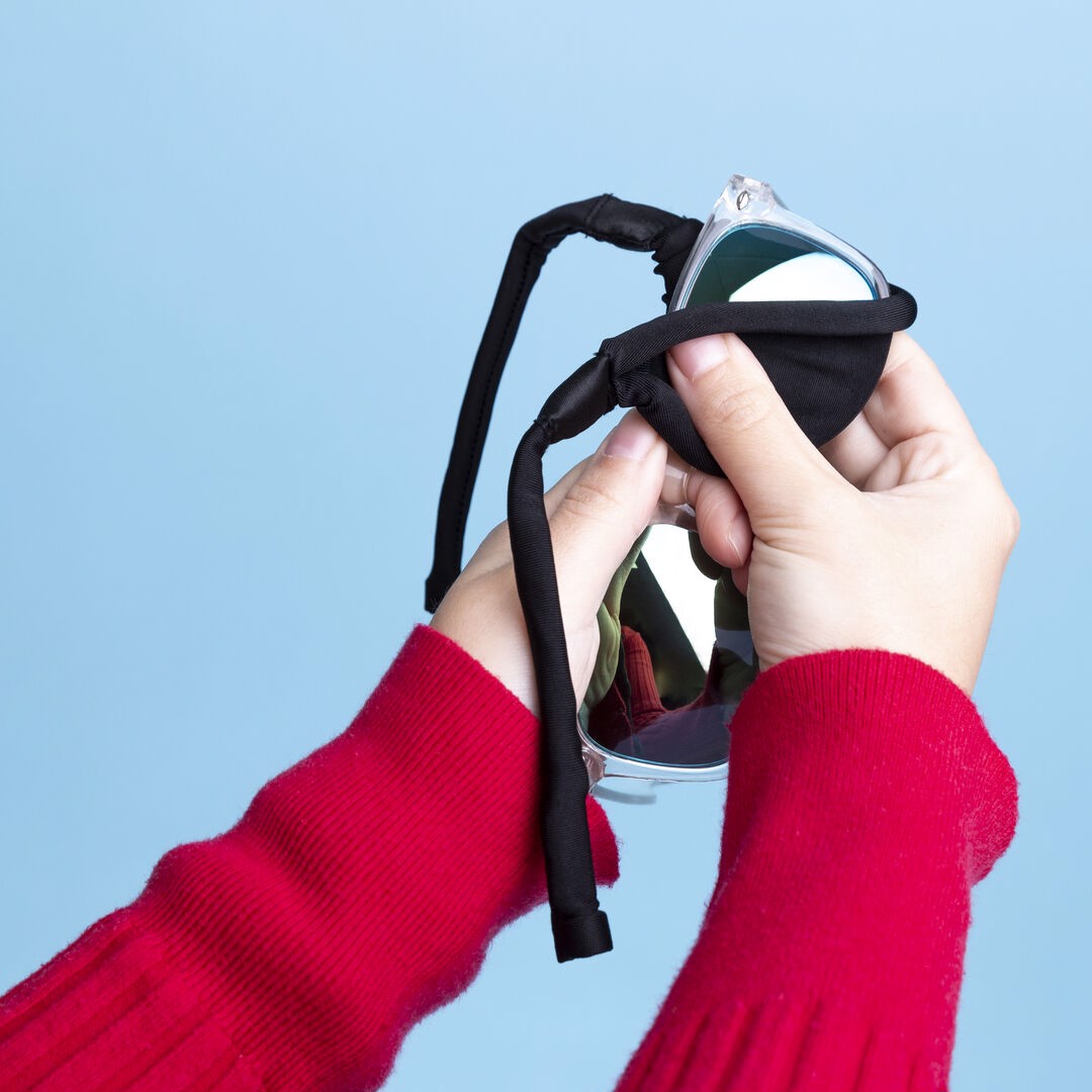 Multi purpose 2-in-1 strap in resistant, brightly colored microfibre. Compatible with all types of eyewear and with cleaning cloth included.