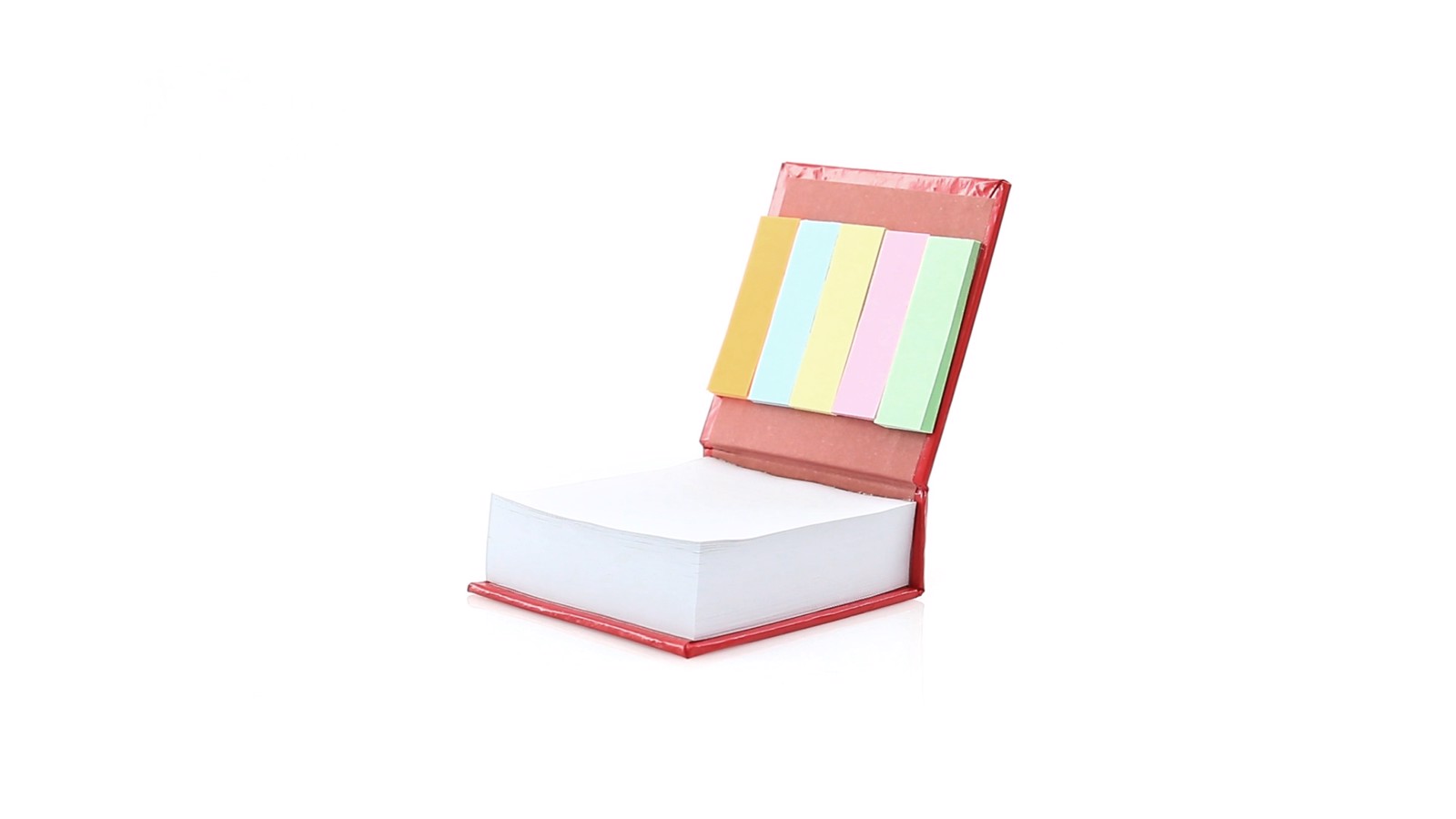 Notepad holder with soft-touch covers in resistant, shiny rigid cardboard and in original colors. With 200 blank sheets and 125 mini sticky notes. 200 Sheets 7,6 x 7,6 cm. 125 Mini Sticky Notes 1,5 x 5 cm